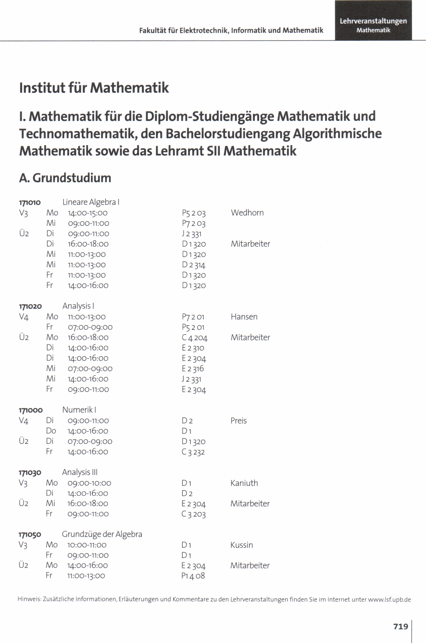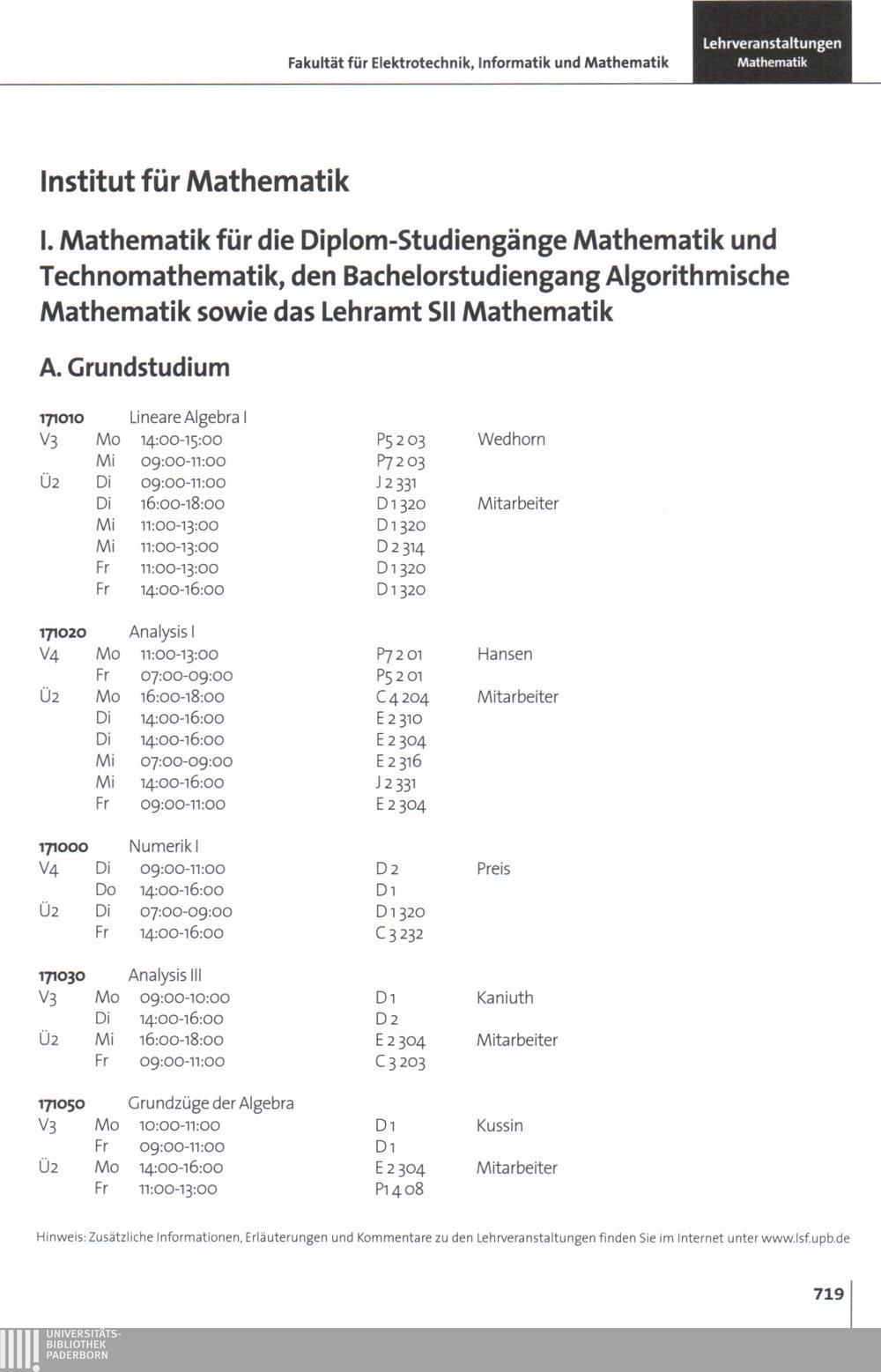 Personal- und Vorlesungsverzeichnis für die Universität Paderborn