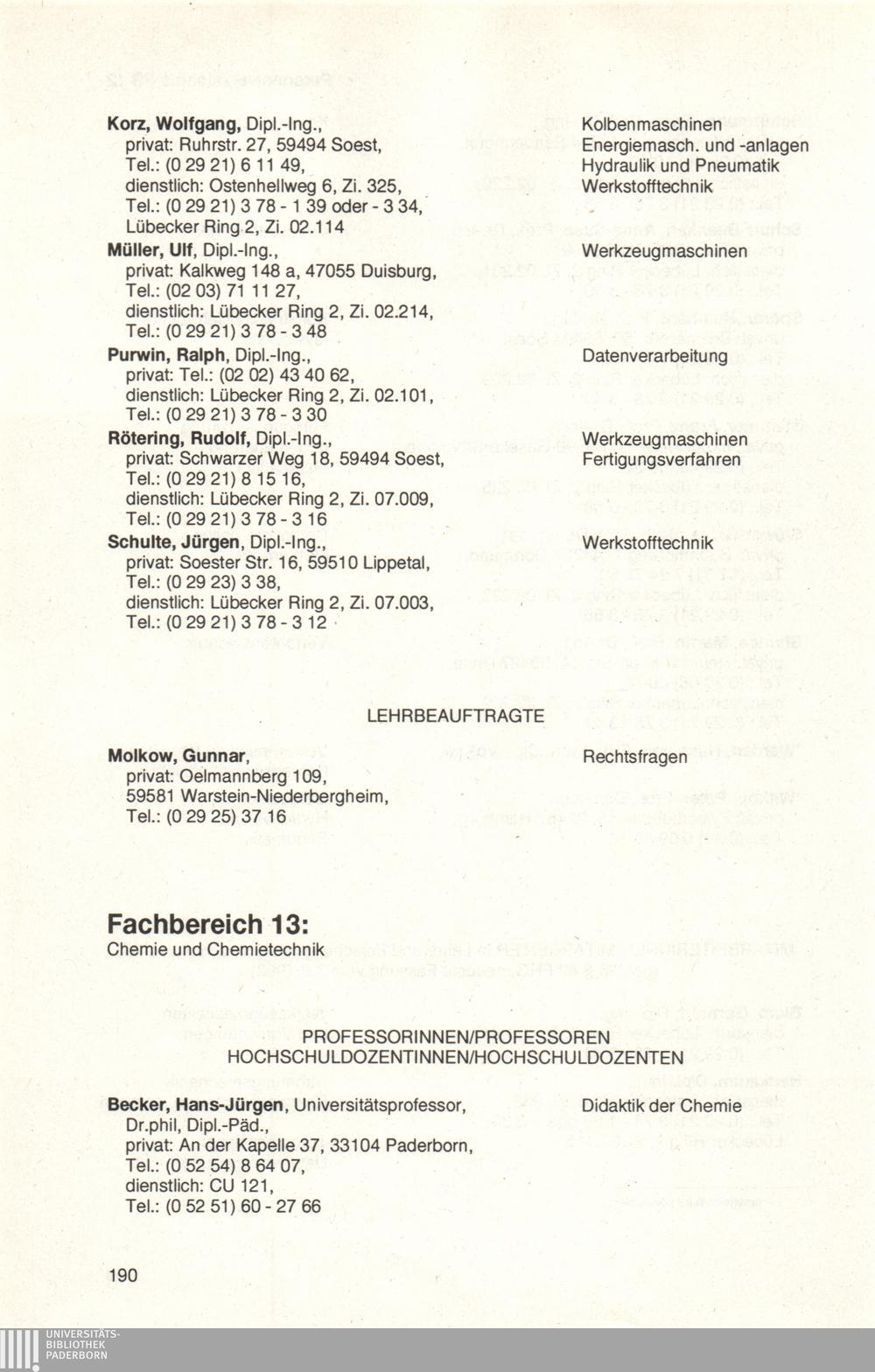 Personal- und Vorlesungsverzeichnis für die Universität Paderborn