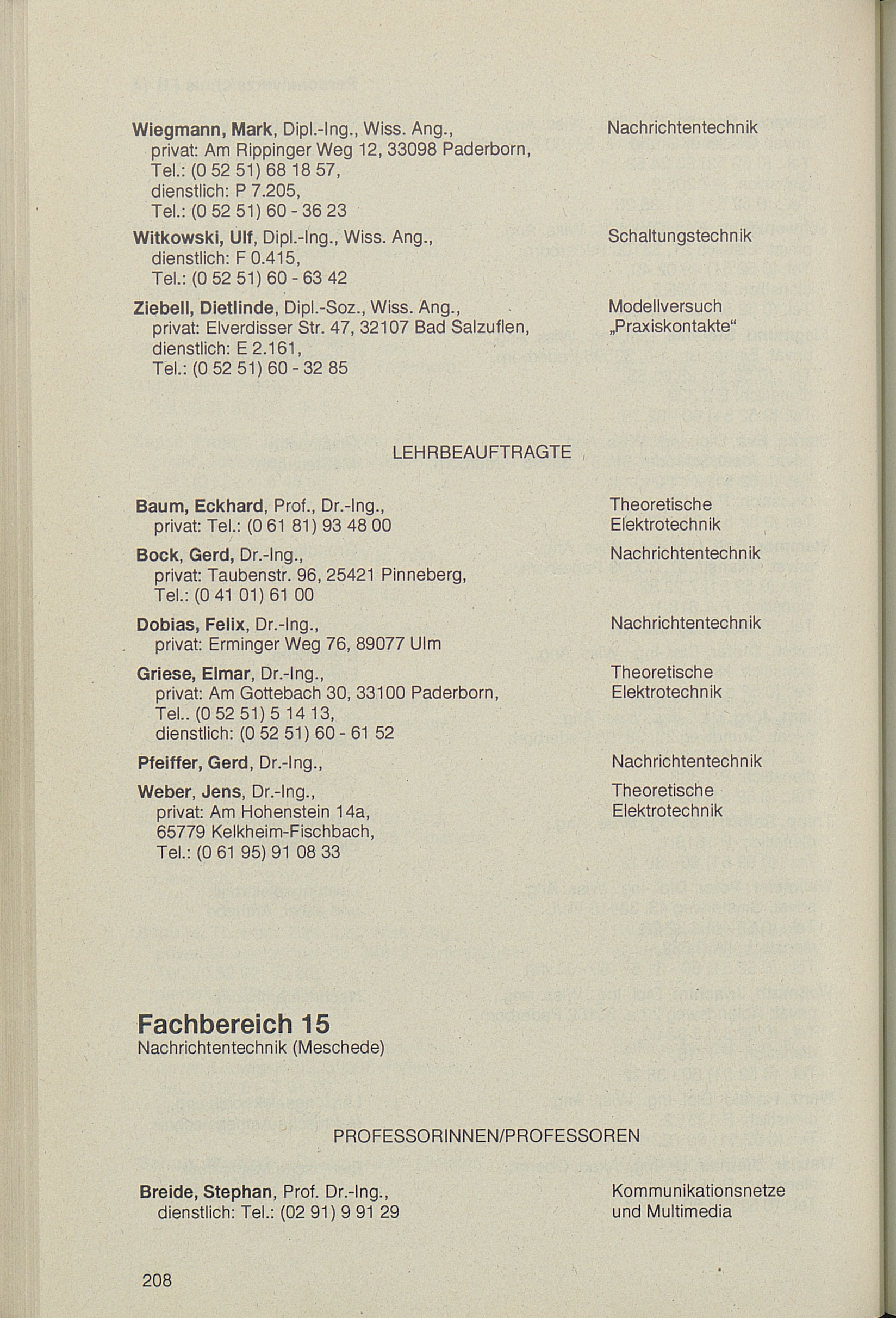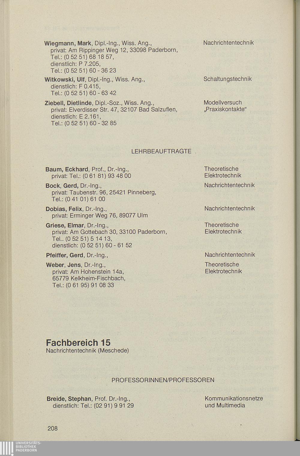 Personal- und Vorlesungsverzeichnis für die Universität Paderborn