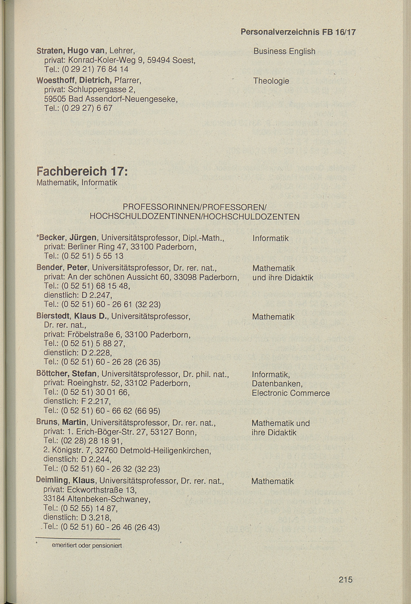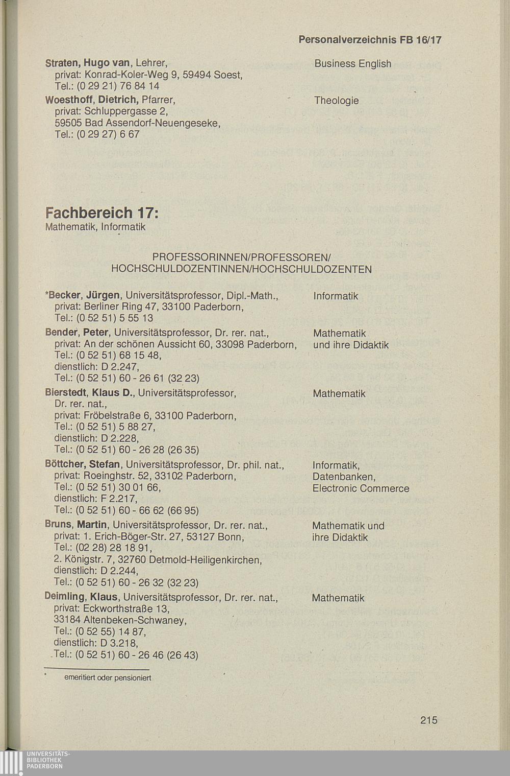 Personal- und Vorlesungsverzeichnis für die Universität Paderborn