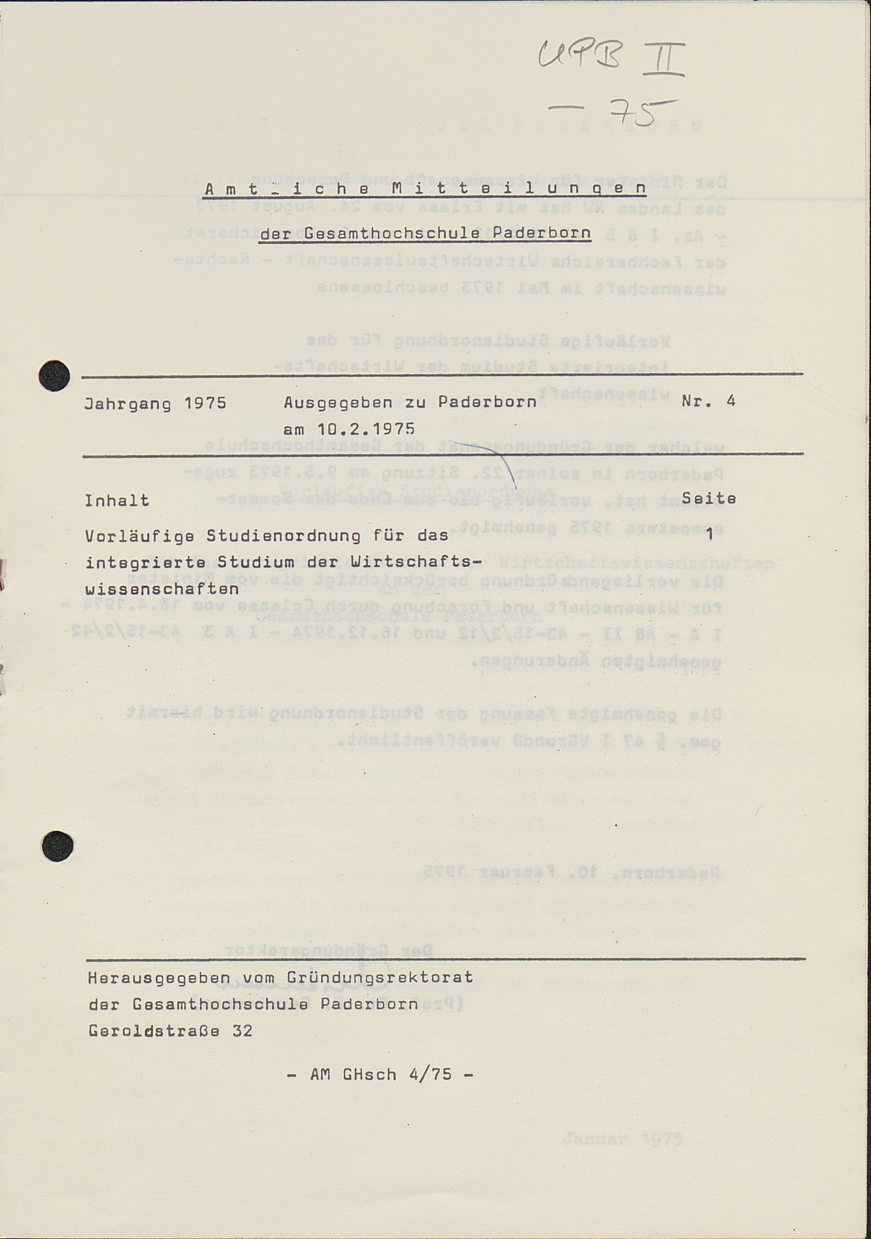 Nr. 4: Vorläufige Studienordnung für das integrierte Studium der Wirtschaftswissenschaften[...]