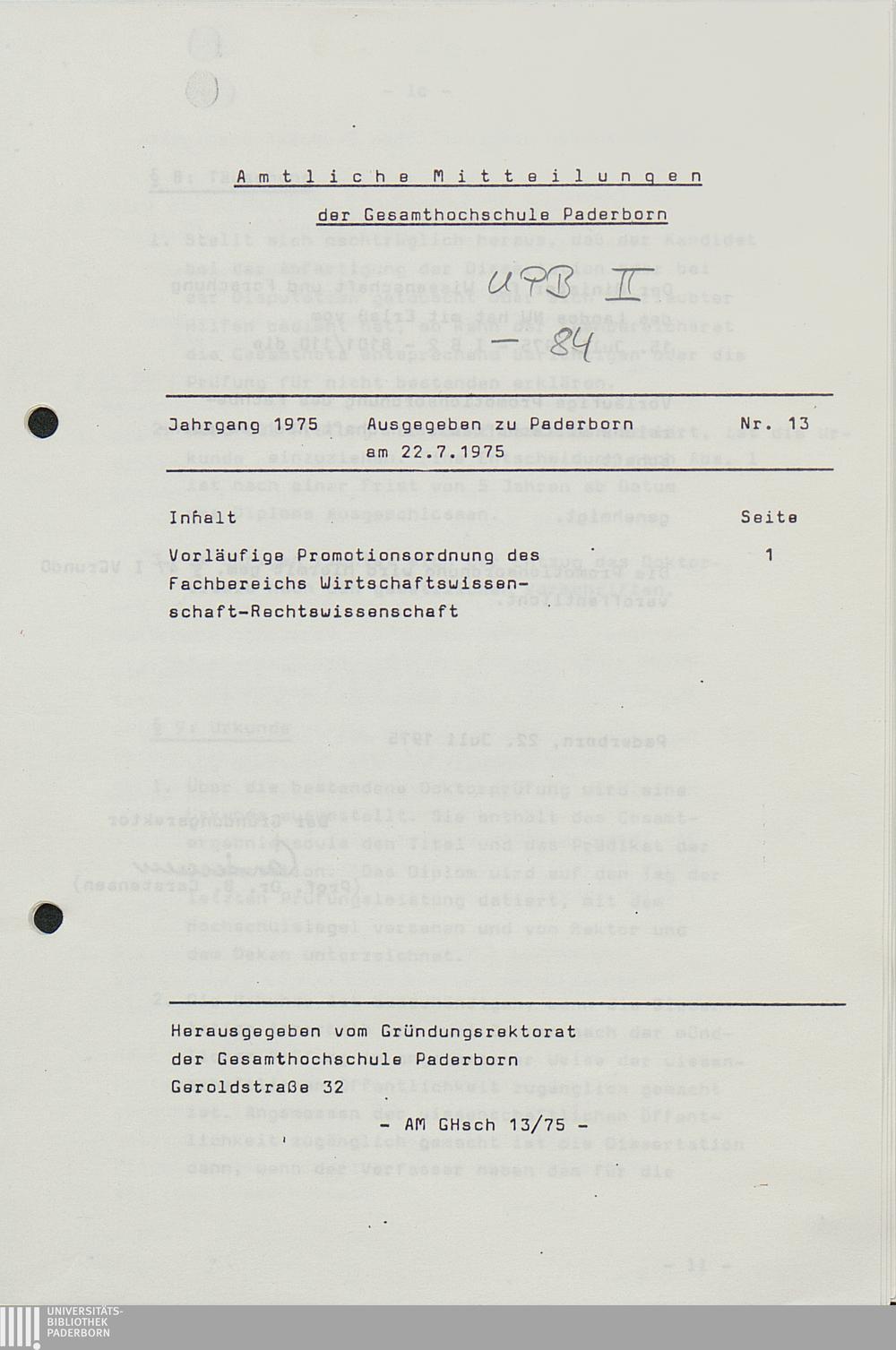 Nr. 13: Vorläufige Promotionsordnung des Fachbereichs Wirtschaftswissenschaft-Rechtswissenschaft[...]