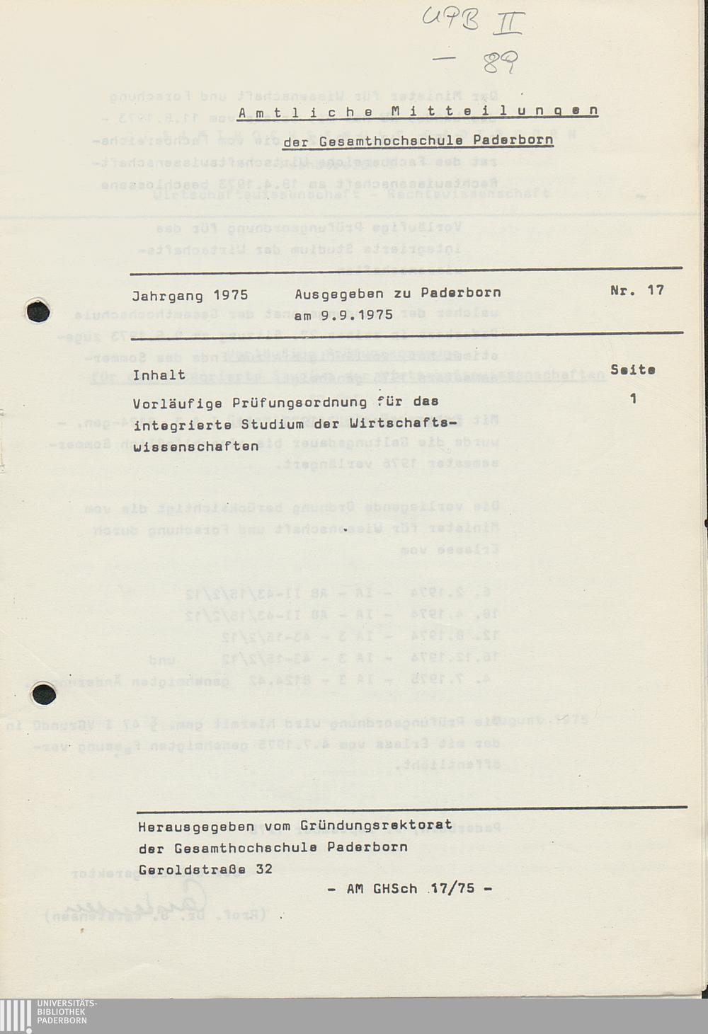 Amtliche Mitteilungen der Gesamthochschule Paderborn