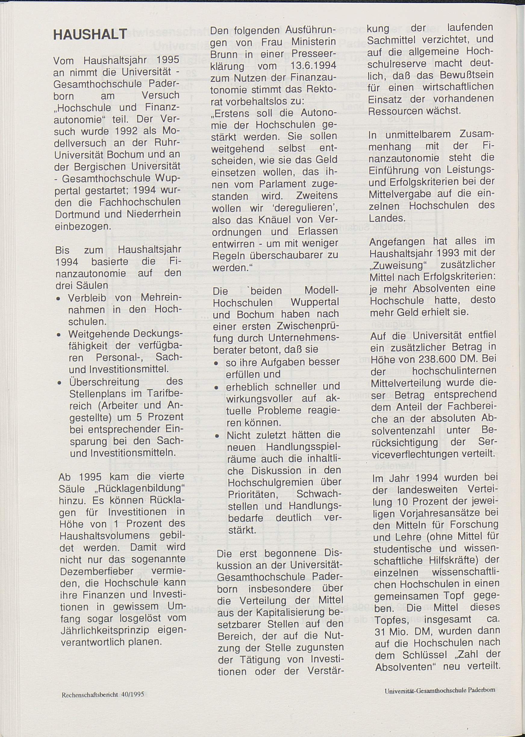 Bericht über die Entwicklung der Hochschule