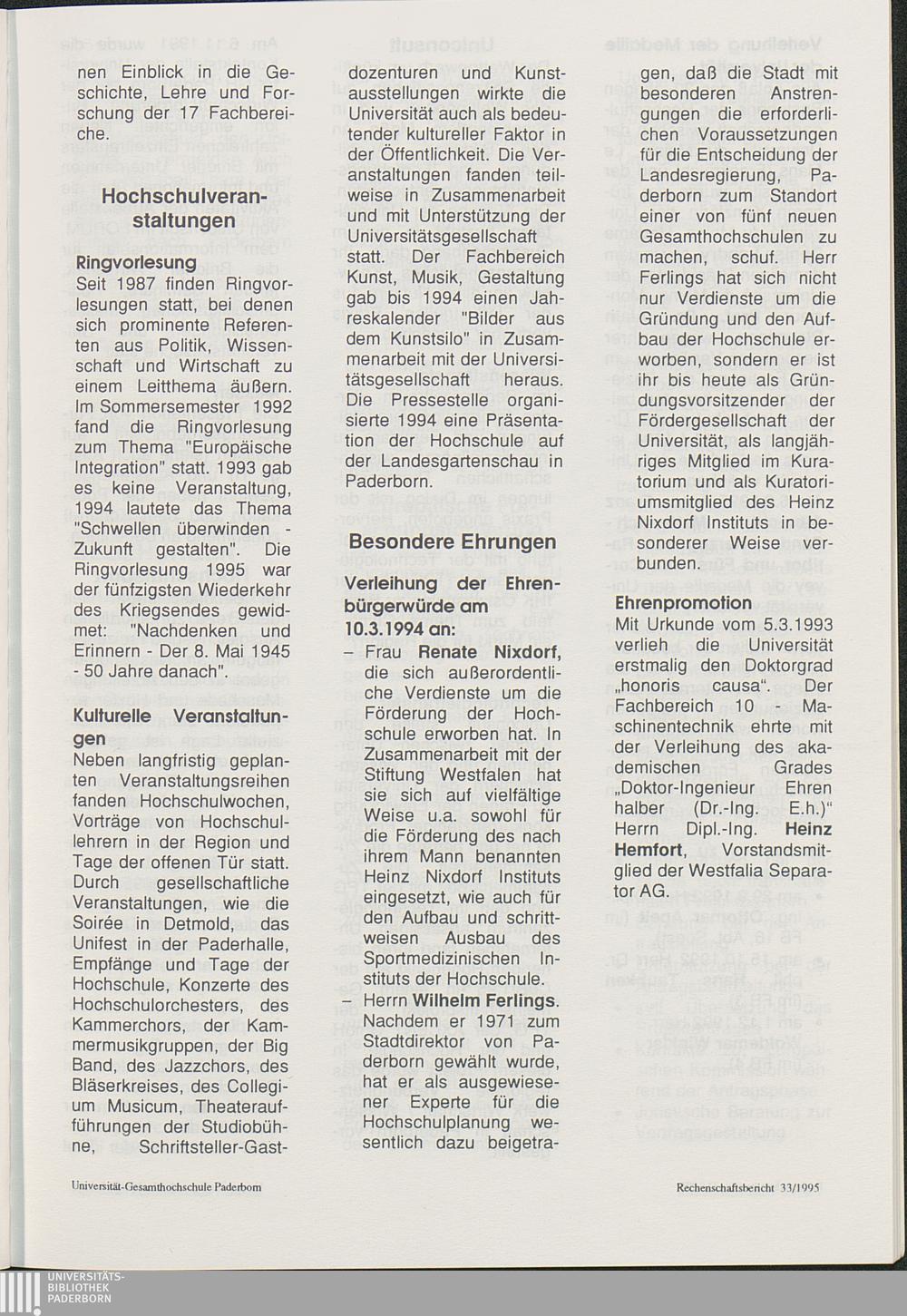 Bericht über die Entwicklung der Hochschule