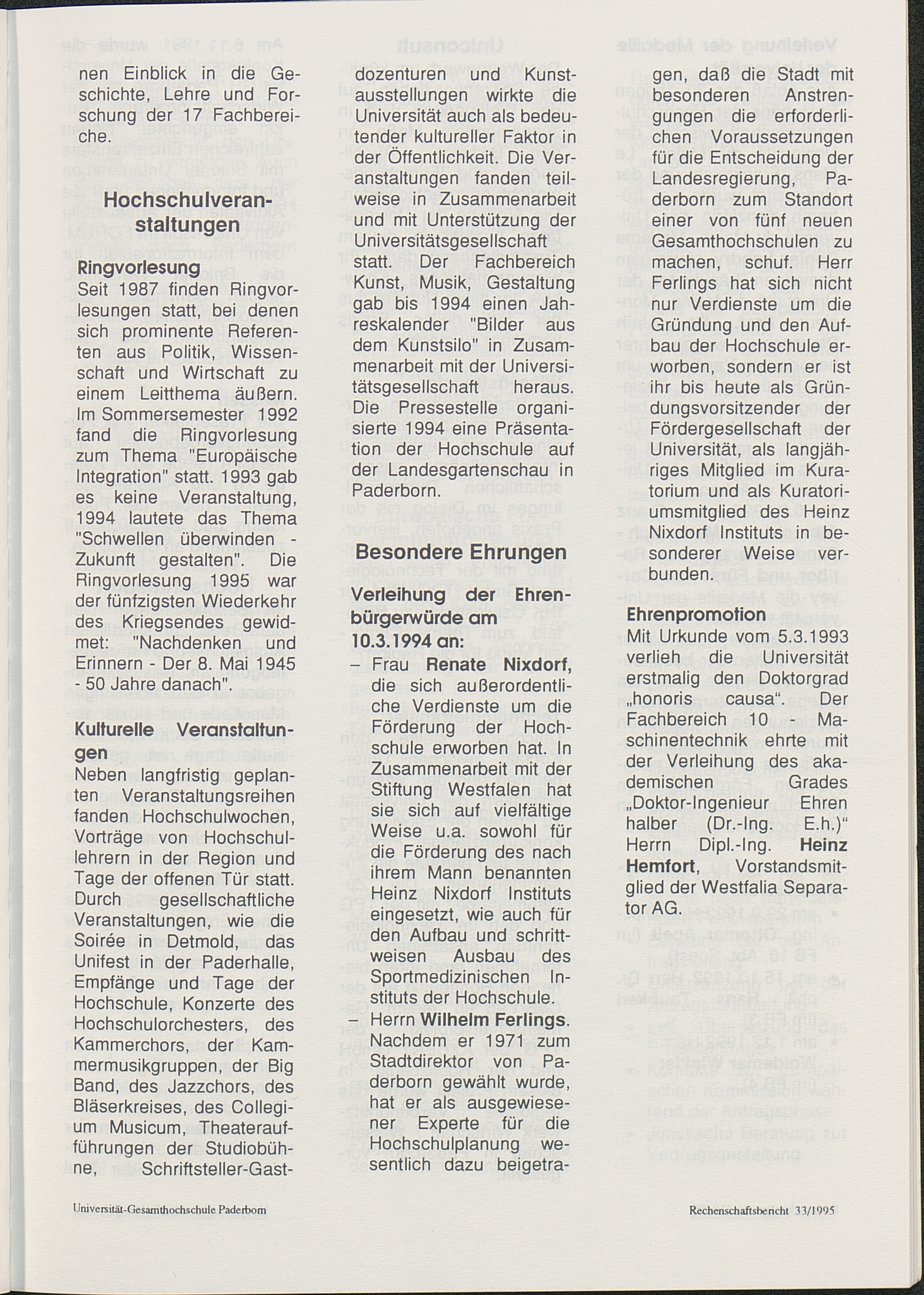 Bericht über die Entwicklung der Hochschule