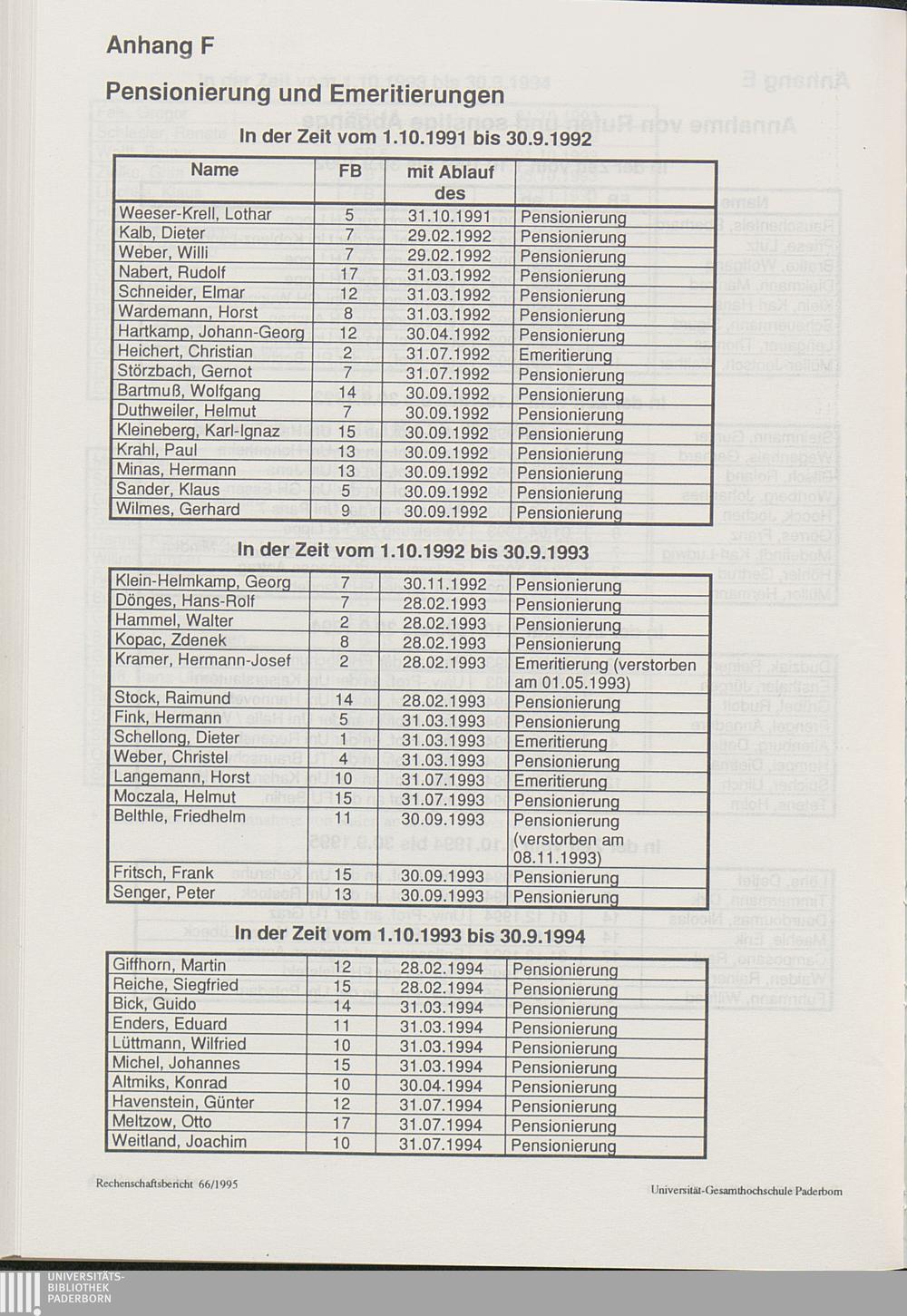 F: Pensionierungen und Emeritierungen
