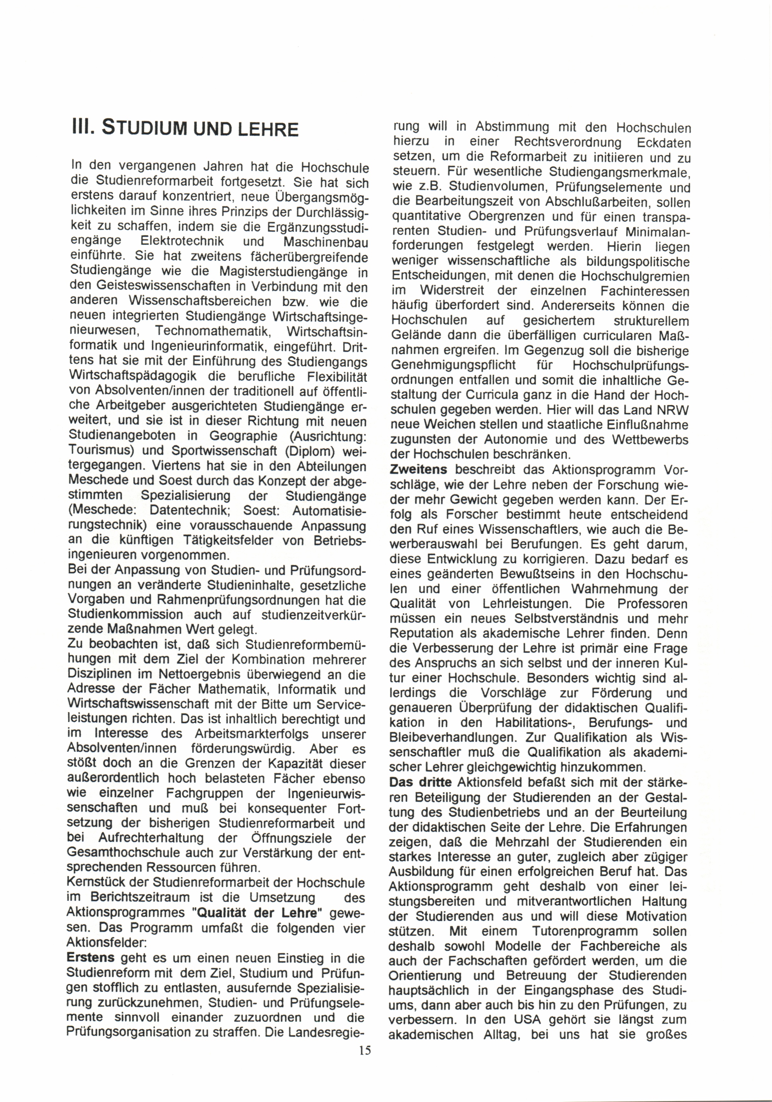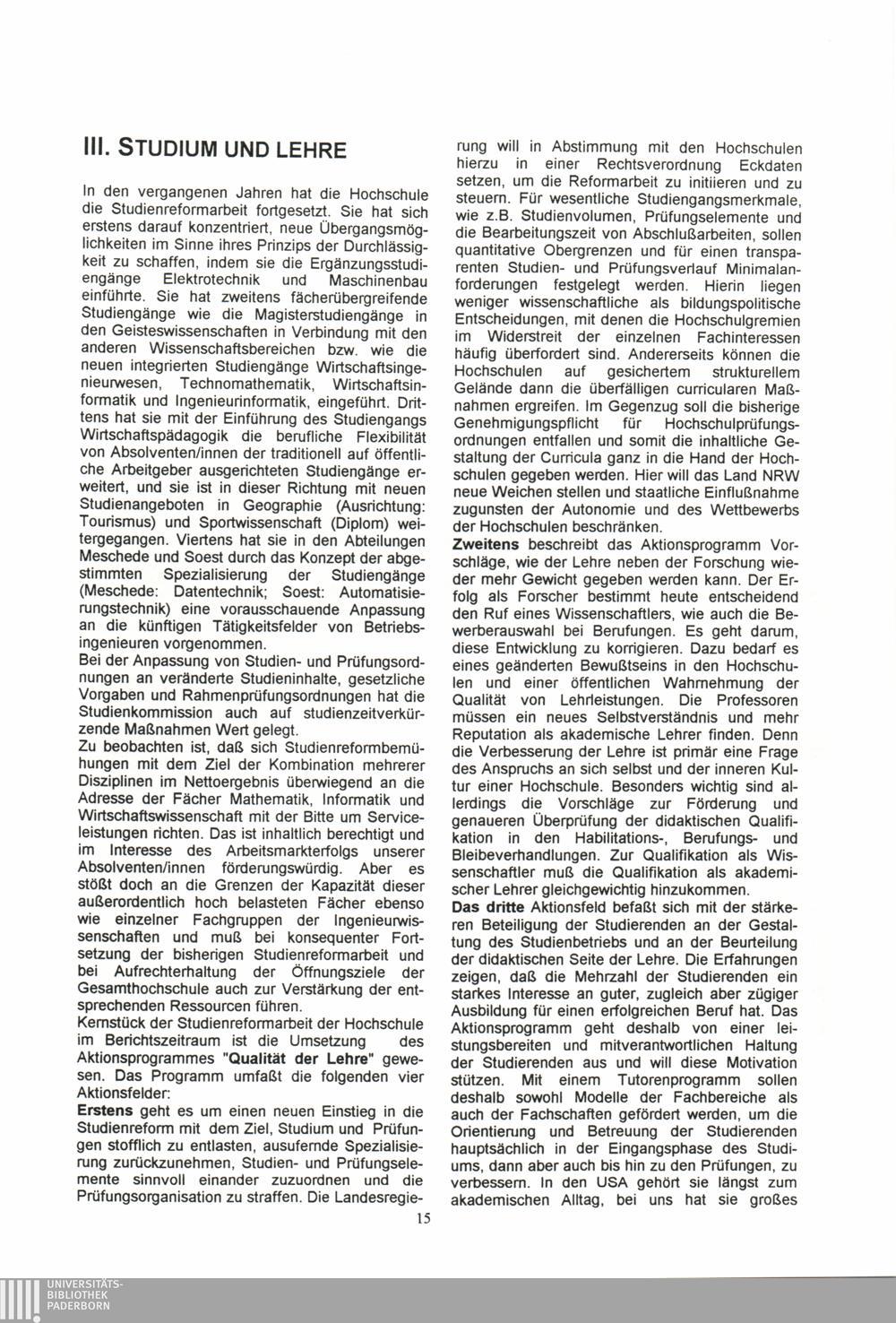 III. Studium und Lehre