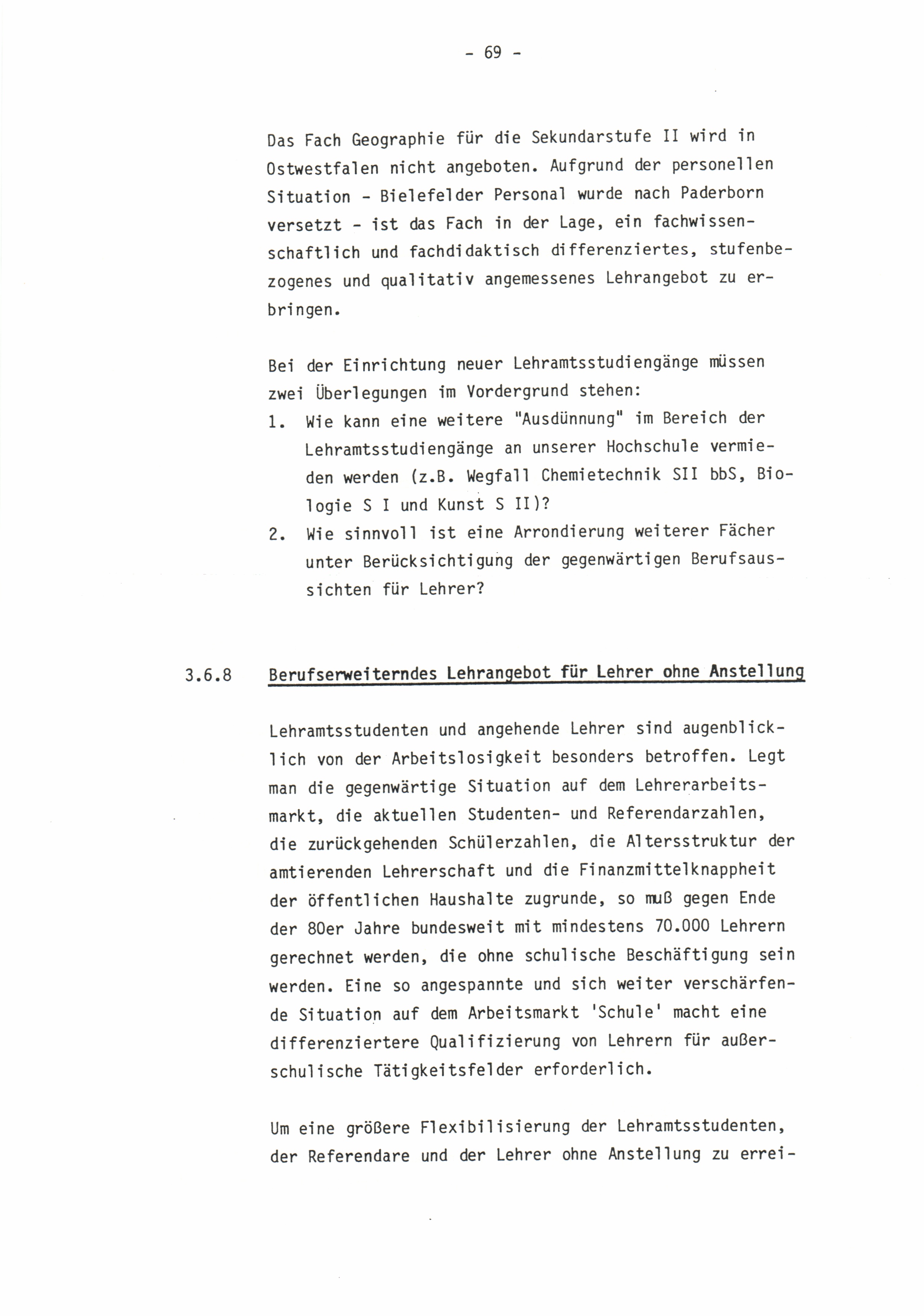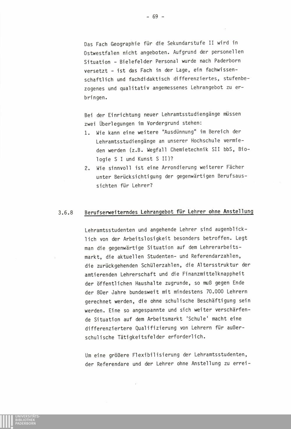 3.6.8 Berufserweiterndes Lehrangebot für Lehrer ohne Anstellung
