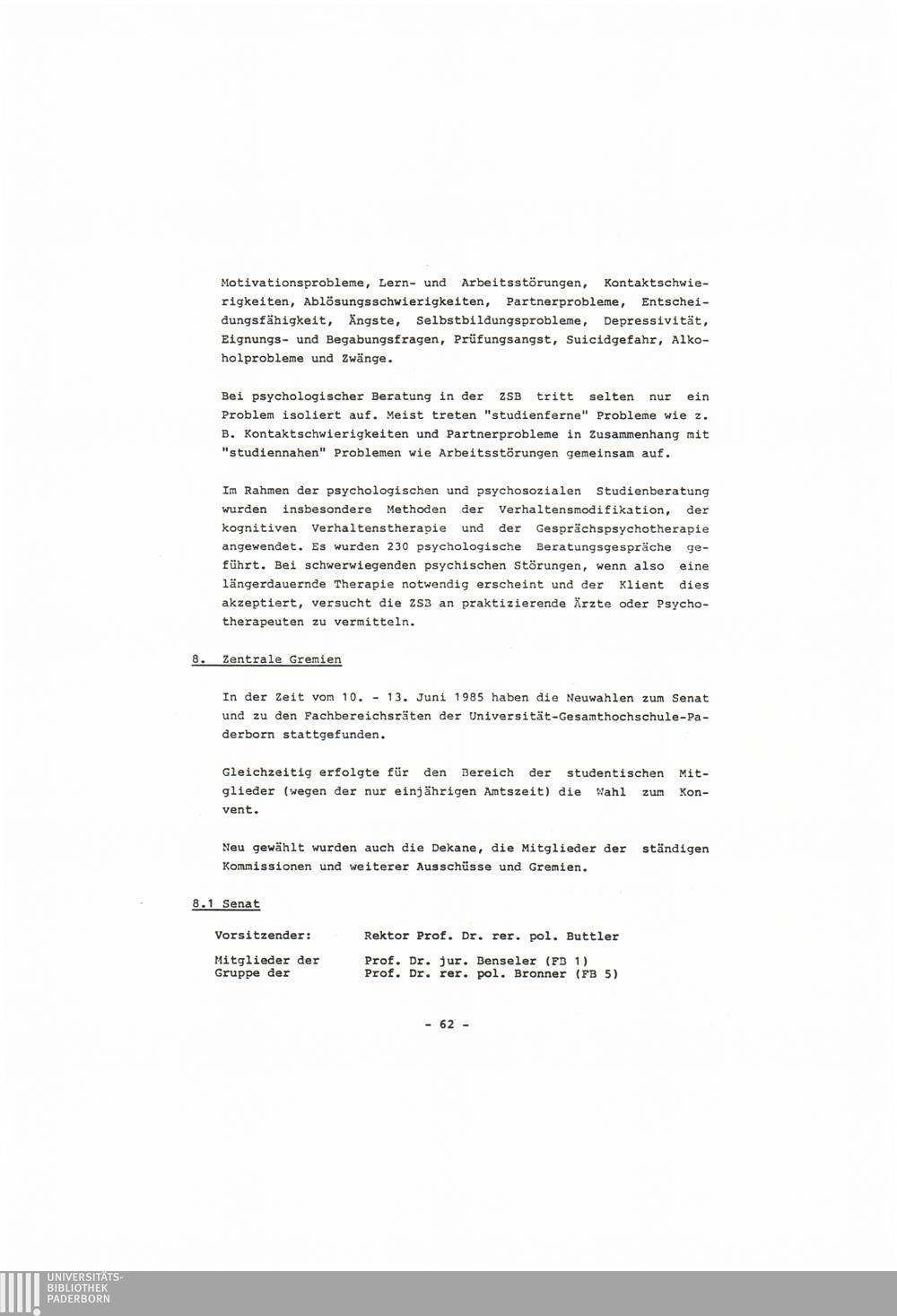 Bericht des Rektorats der Universität-Gesamthochschule Paderborn