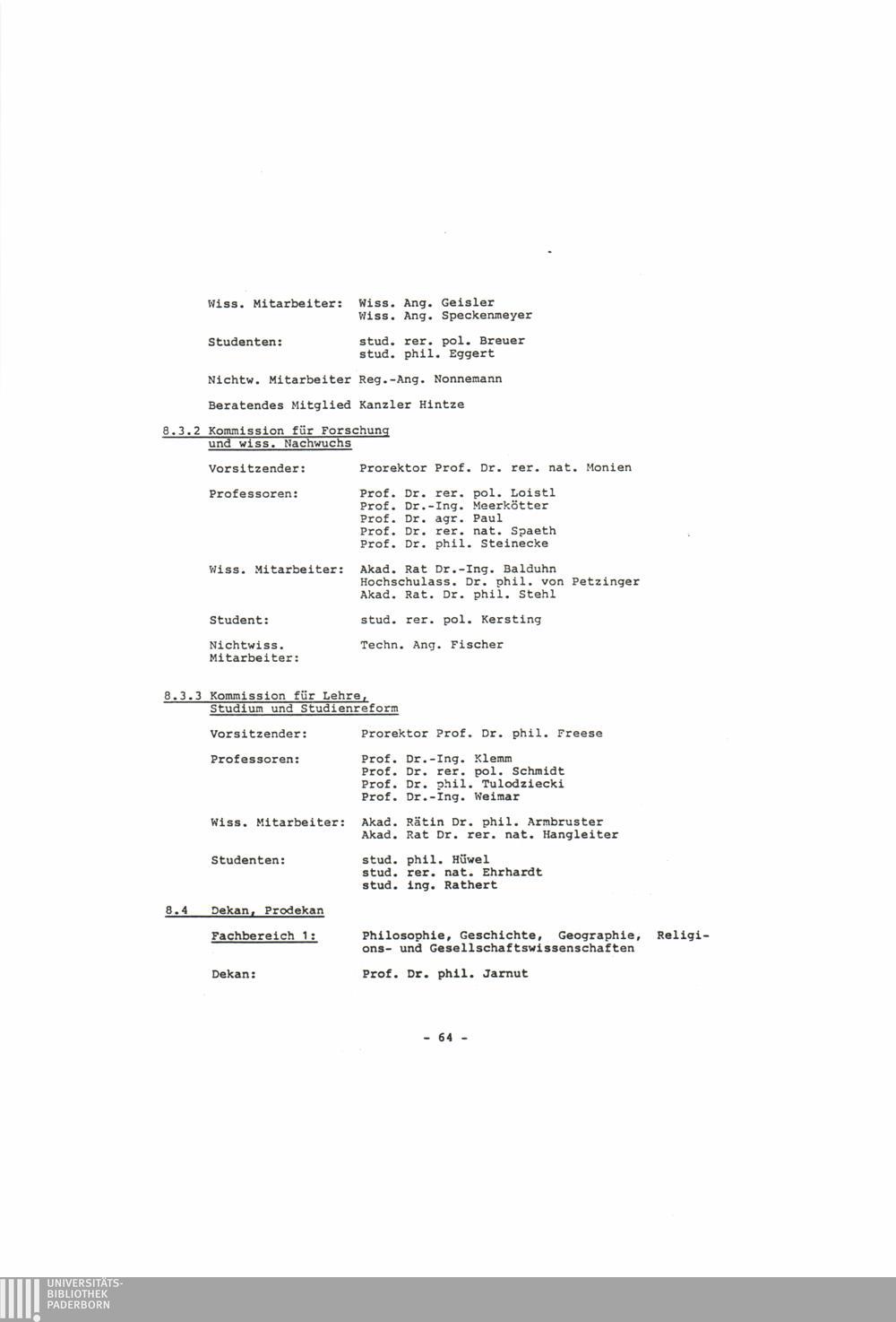 Bericht des Rektorats der Universität-Gesamthochschule Paderborn