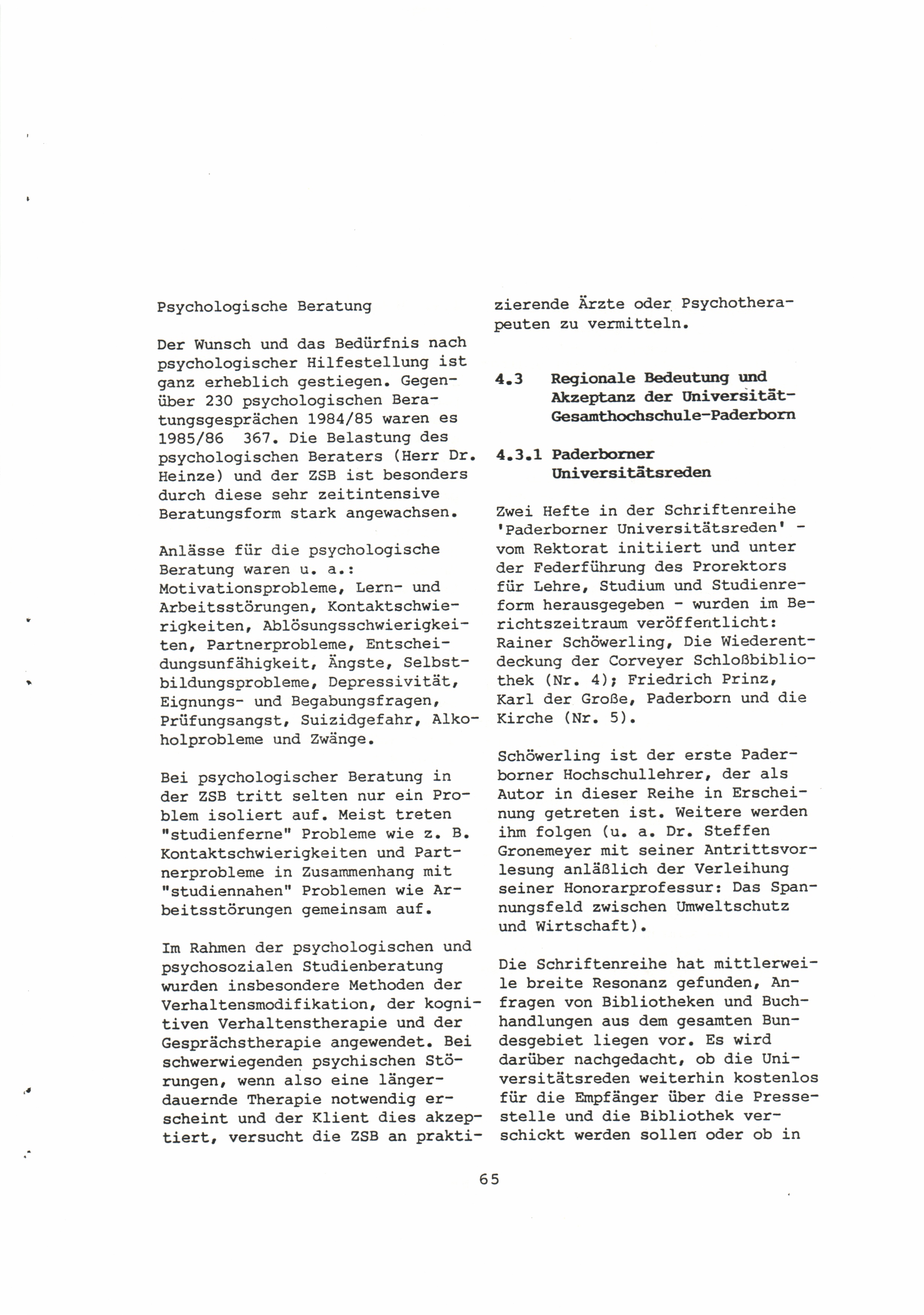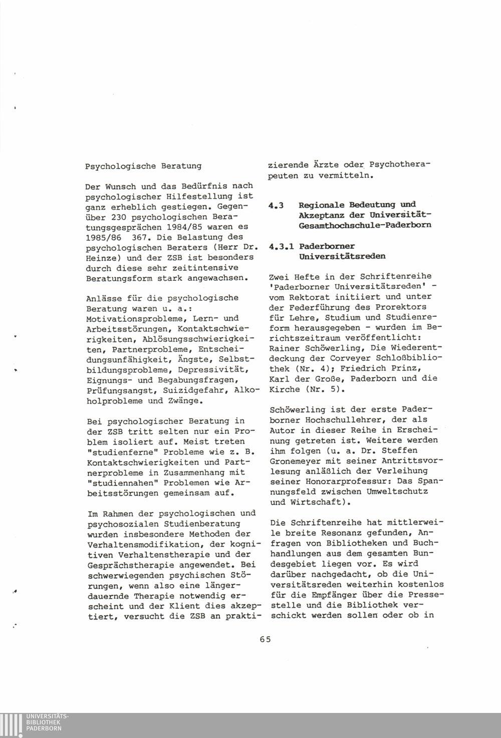 4.3 Regionale Bedeutung und Akzeptanz der Universität-Gesamthochschule Paderborn