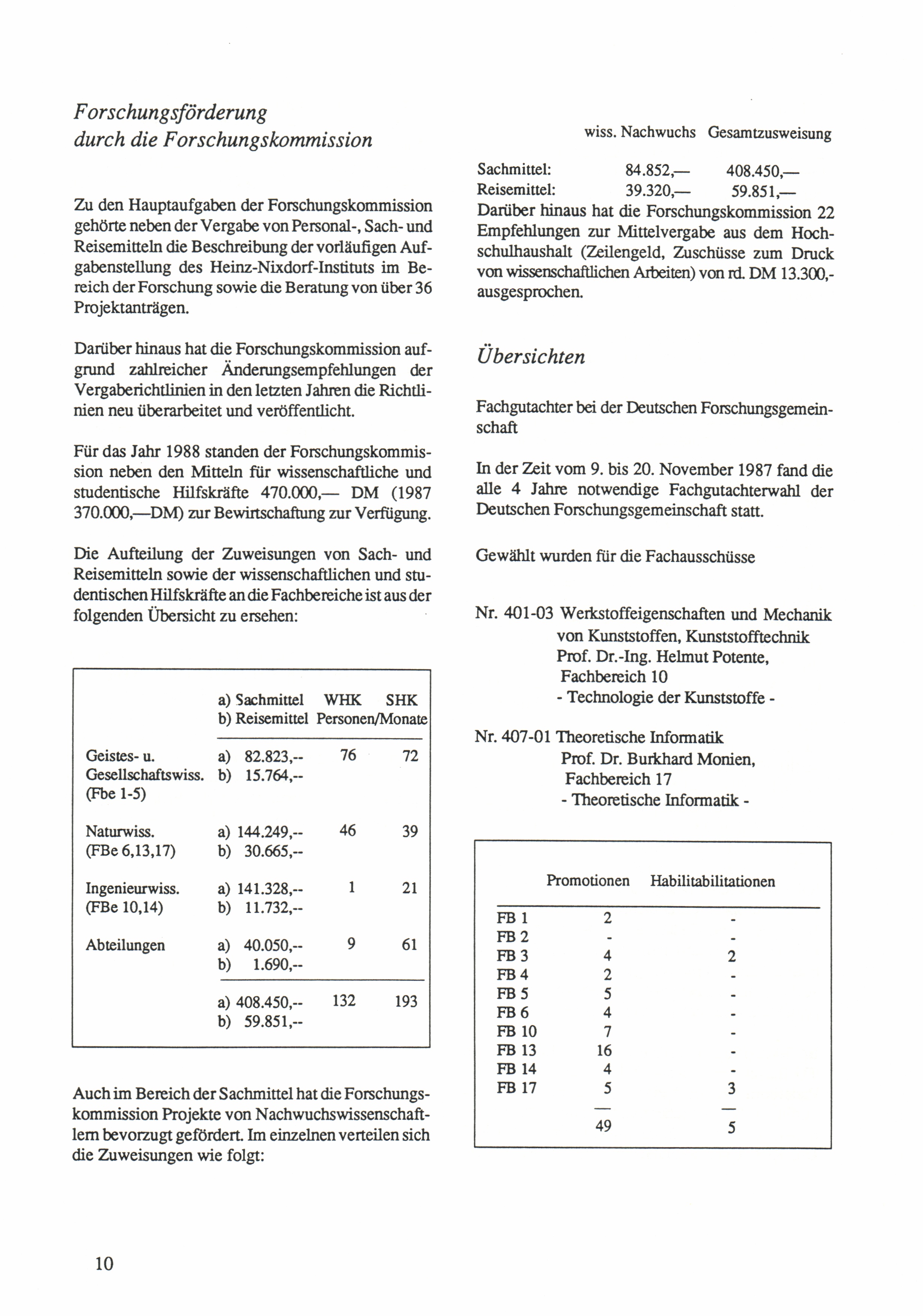 Übersichten: Fachgutachter DFG, Promotionen, Habilitationen, Graduiertenförderung,[...]