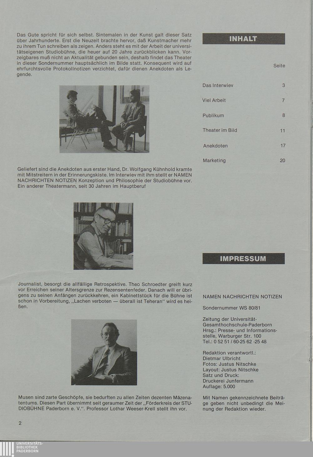 Sondernummer Zwanzig Jahre Studiobühne, WS 80/81
