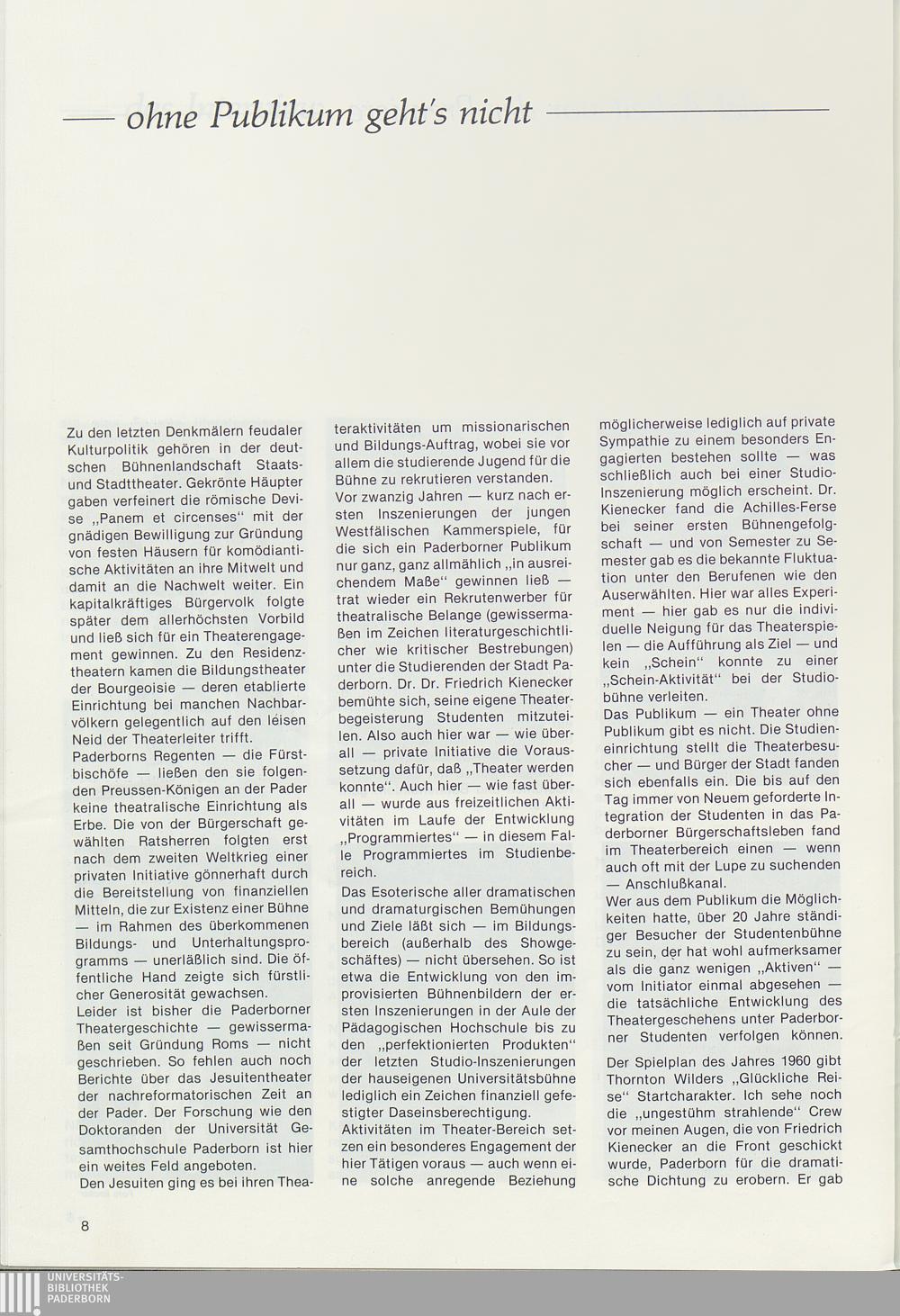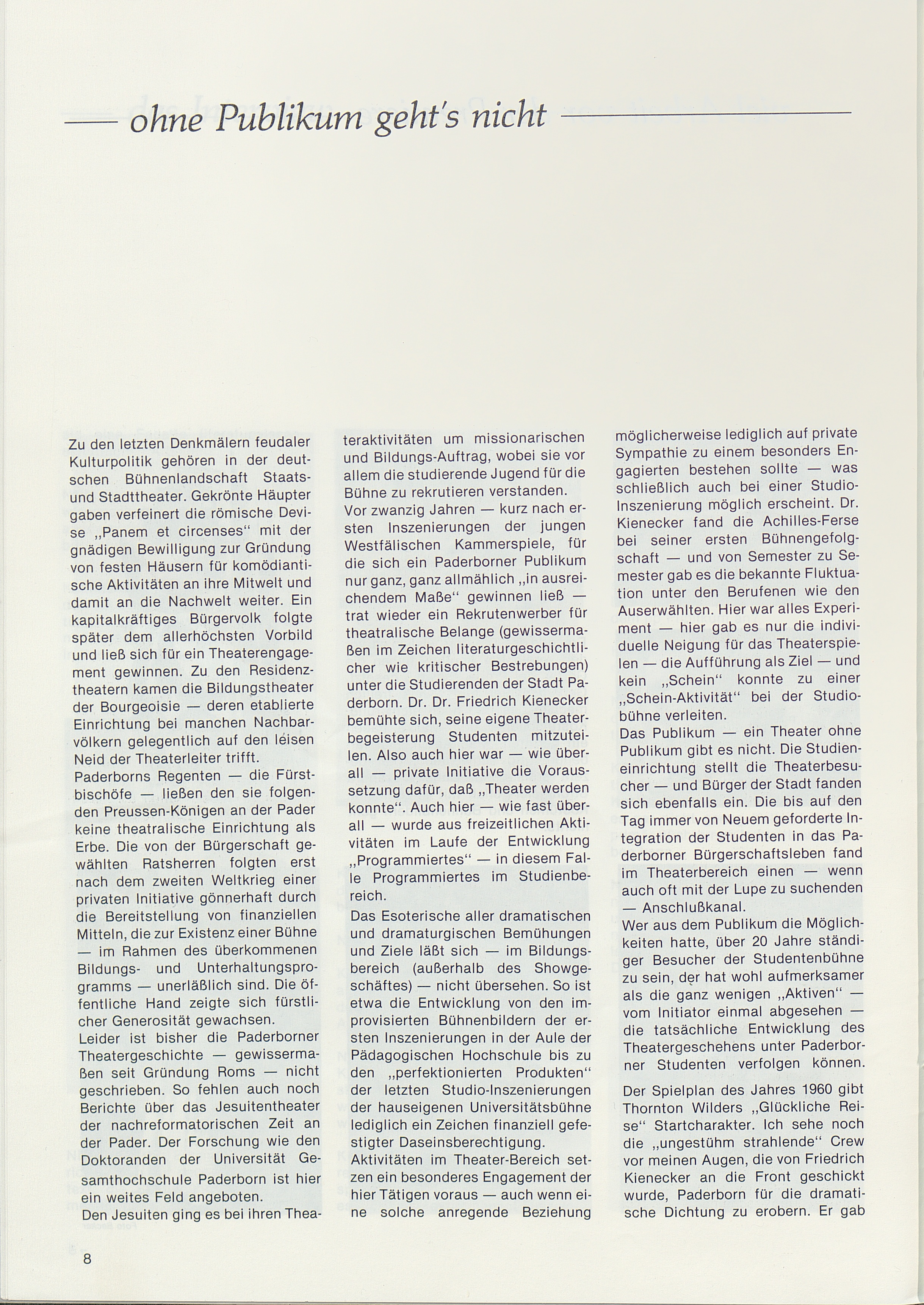 Sondernummer Zwanzig Jahre Studiobühne, WS 80/81