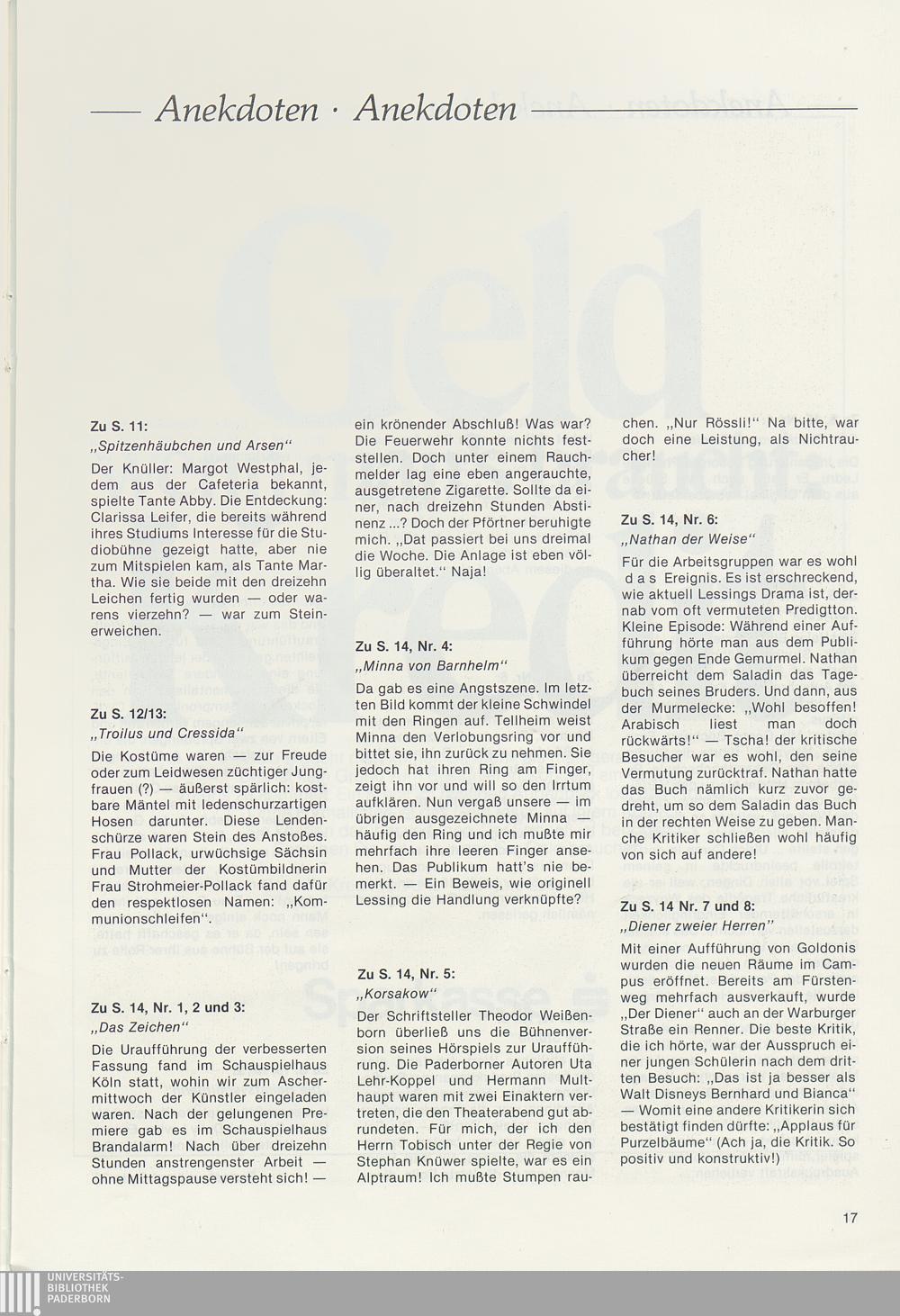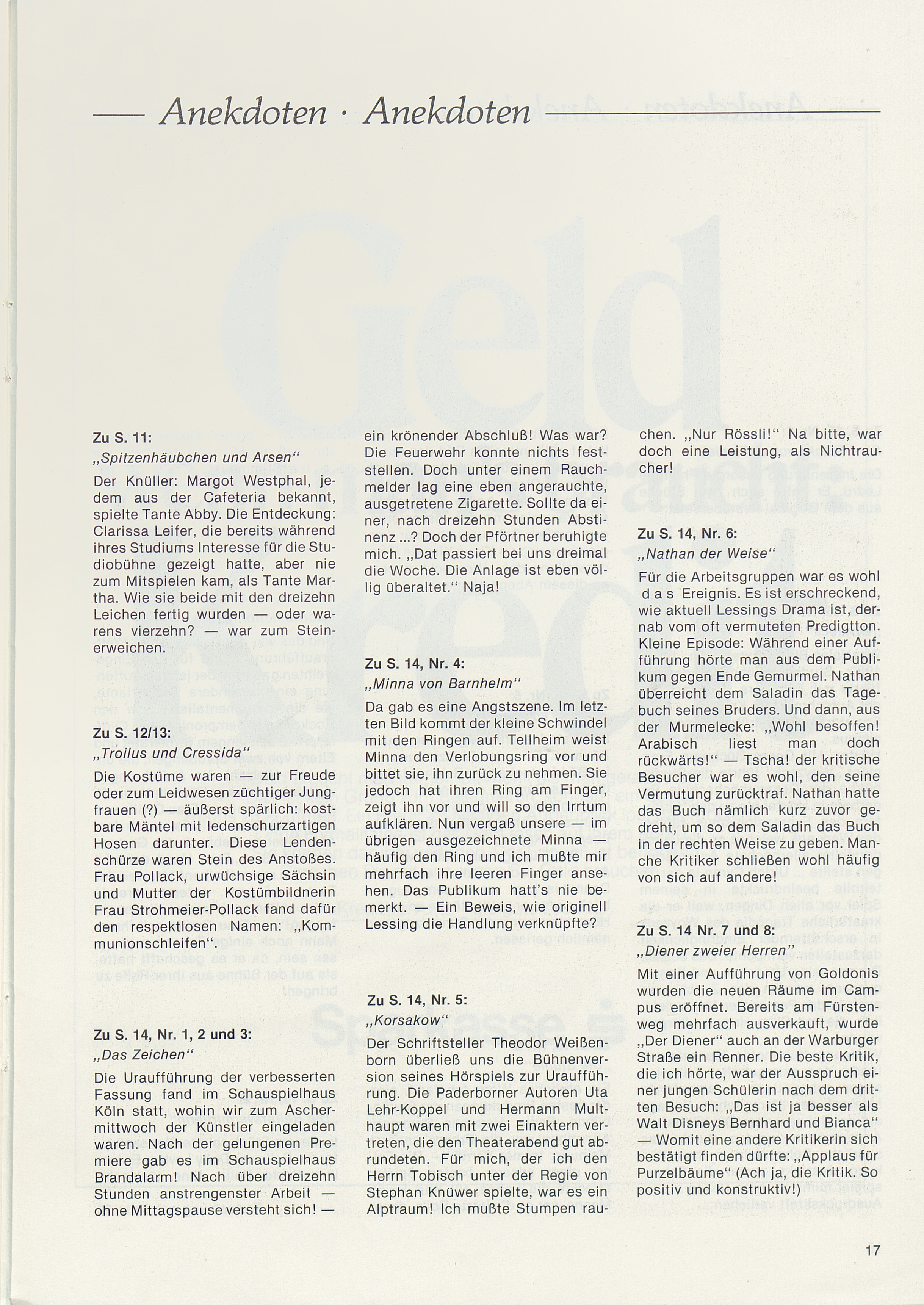 Sondernummer Zwanzig Jahre Studiobühne, WS 80/81