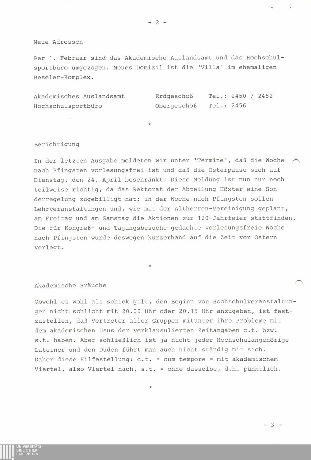 Neue Adressen / Berichtigung / Akademische Bräuche