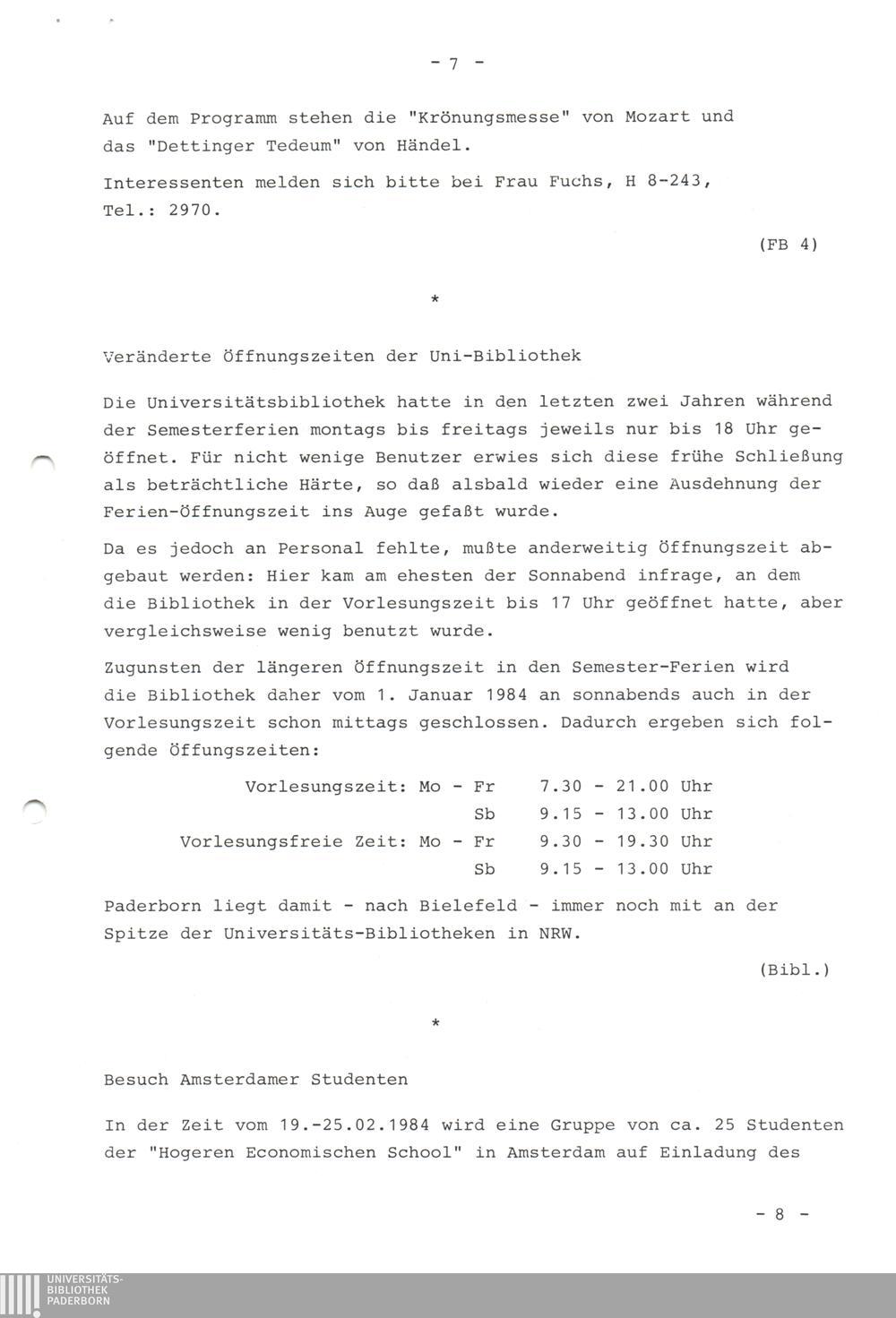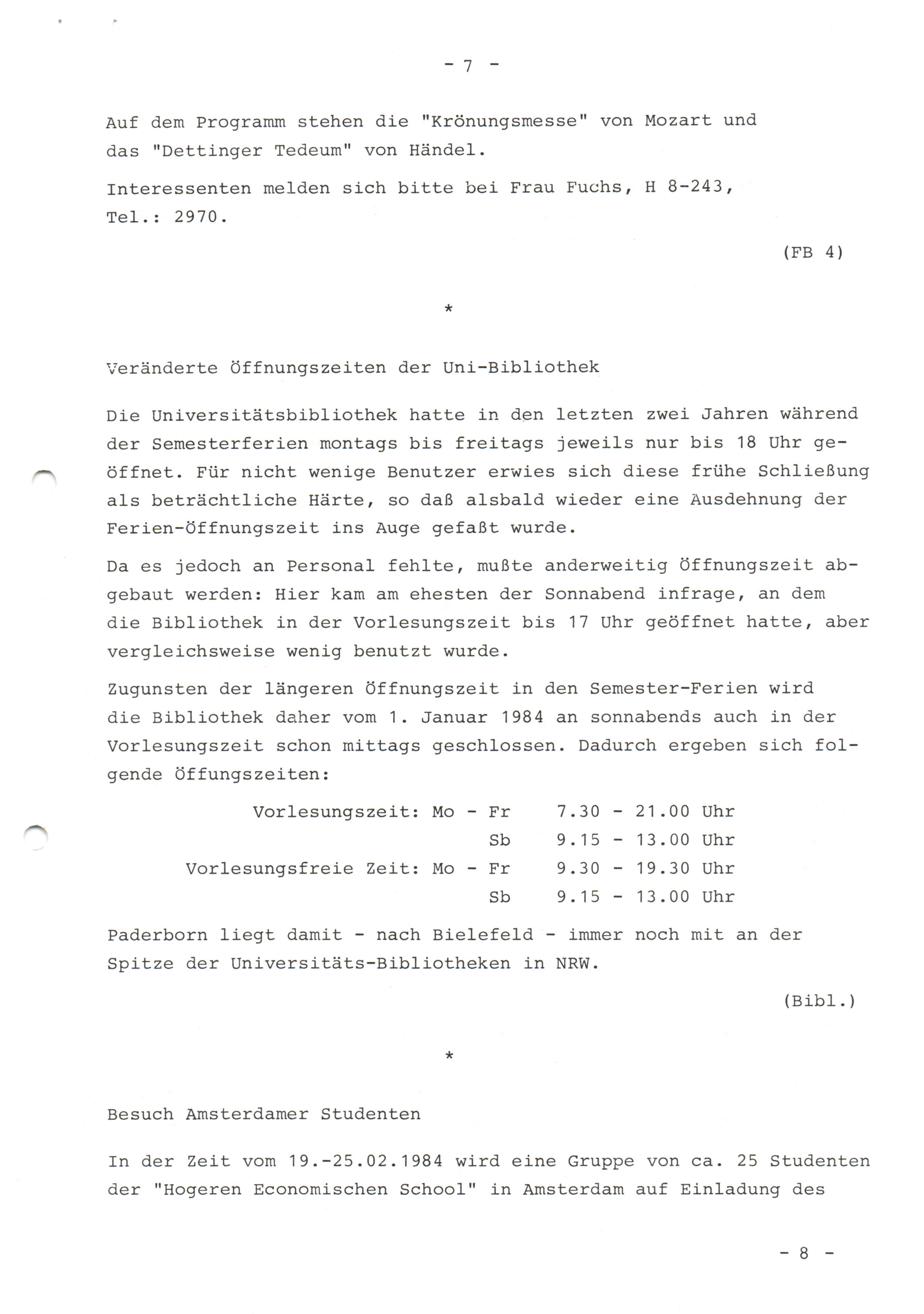 Veränderten Öffnungszeiten / Besuch Amsterdamer Studenten