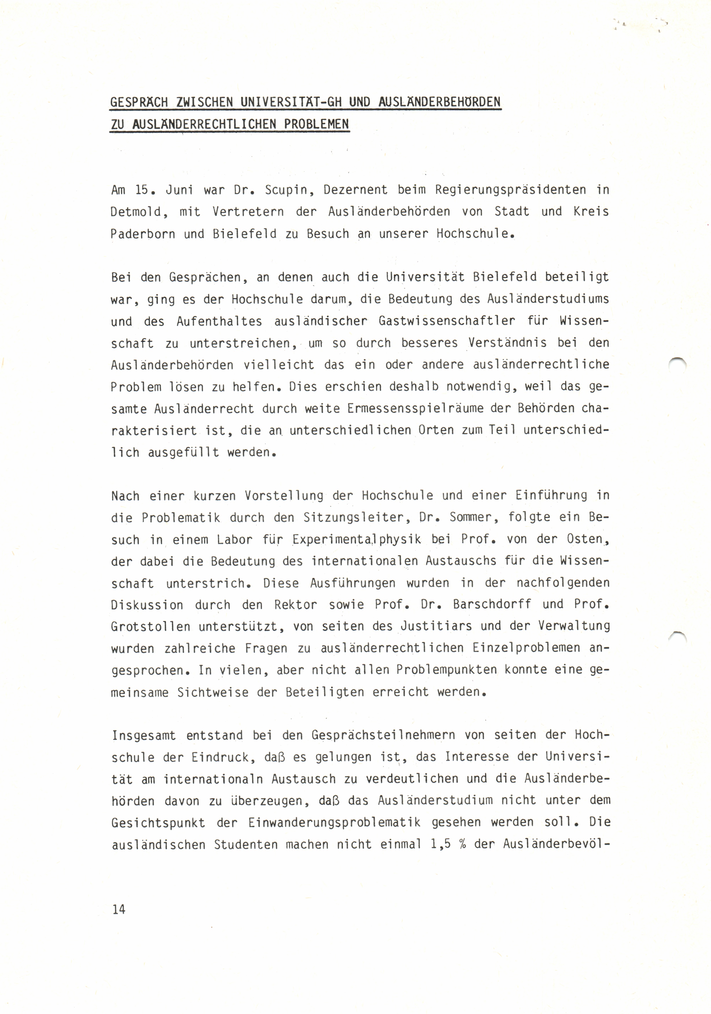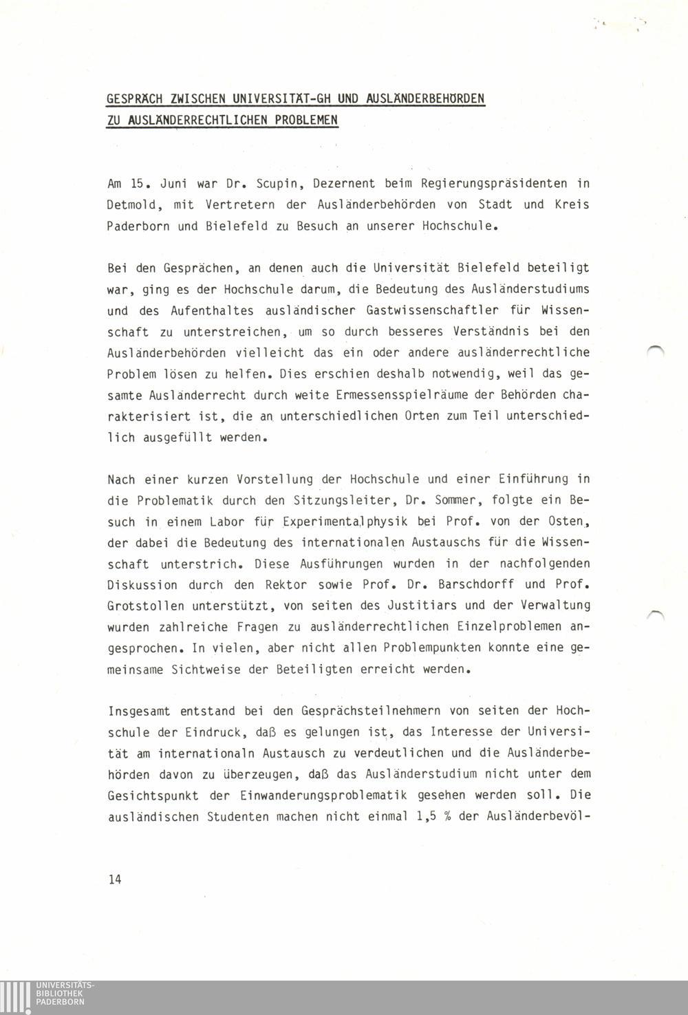 Gespräch zwischen Universität-GH und Ausländerbehörden