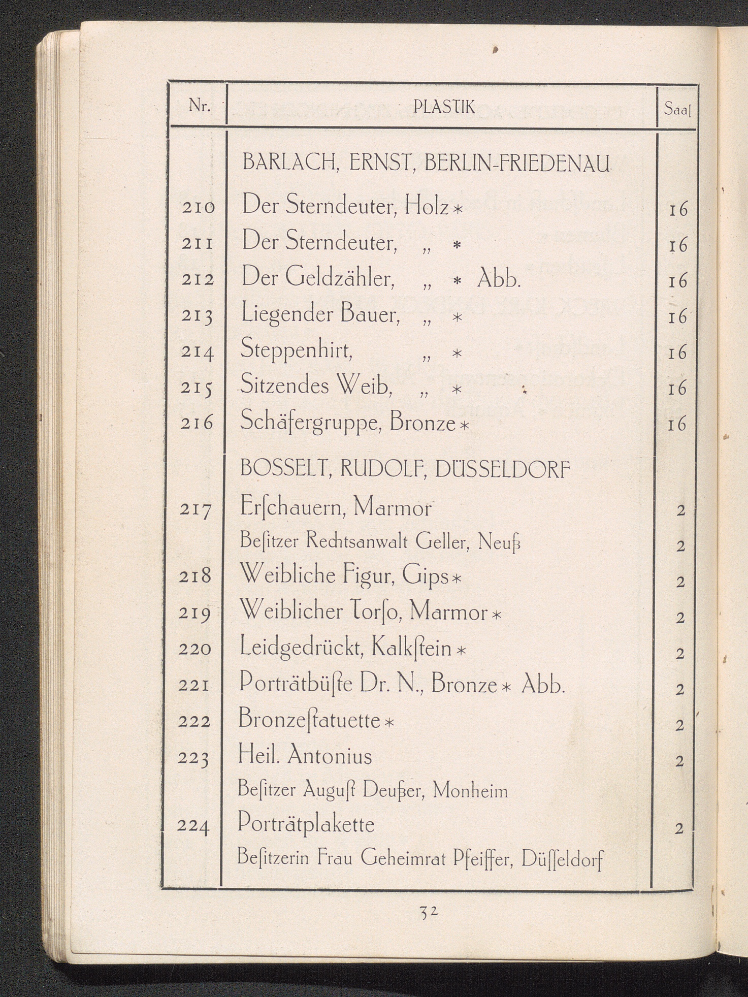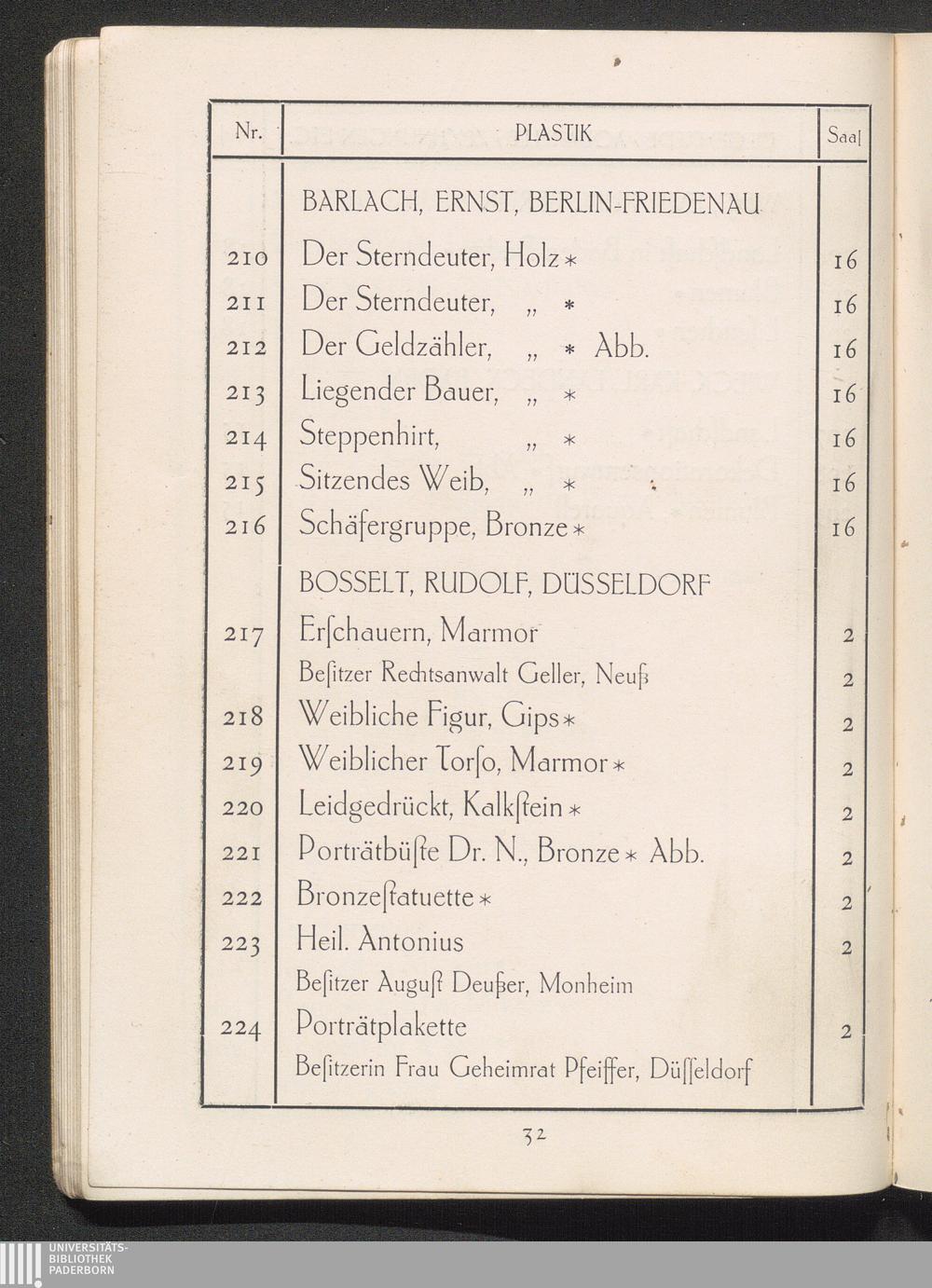 Verzeichnis der ausgestellten Werke