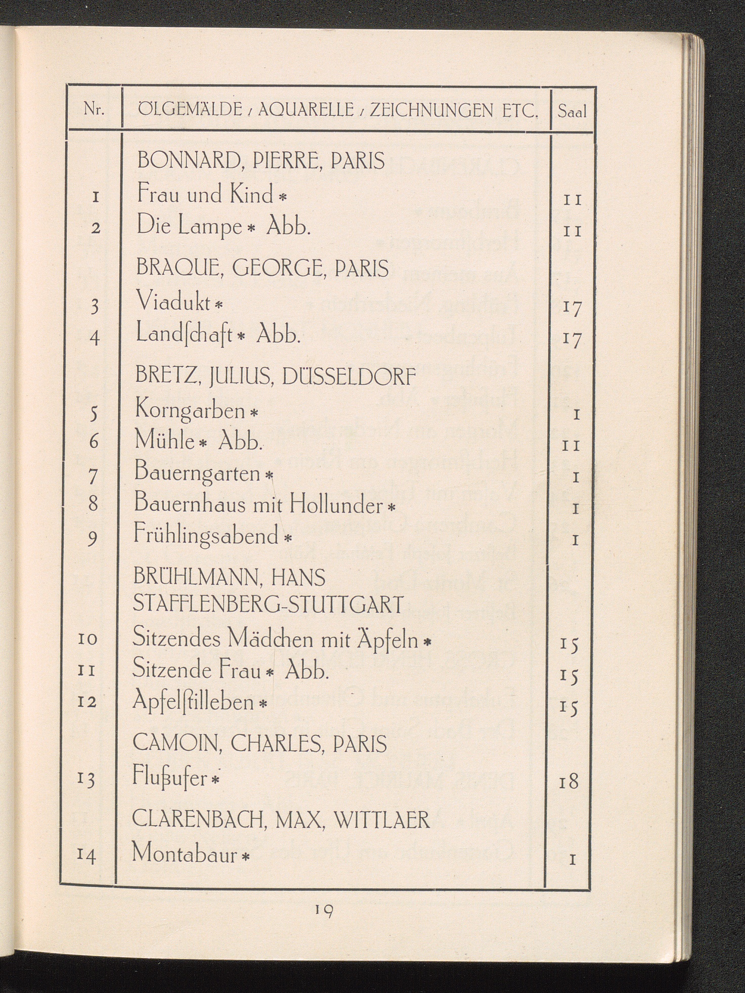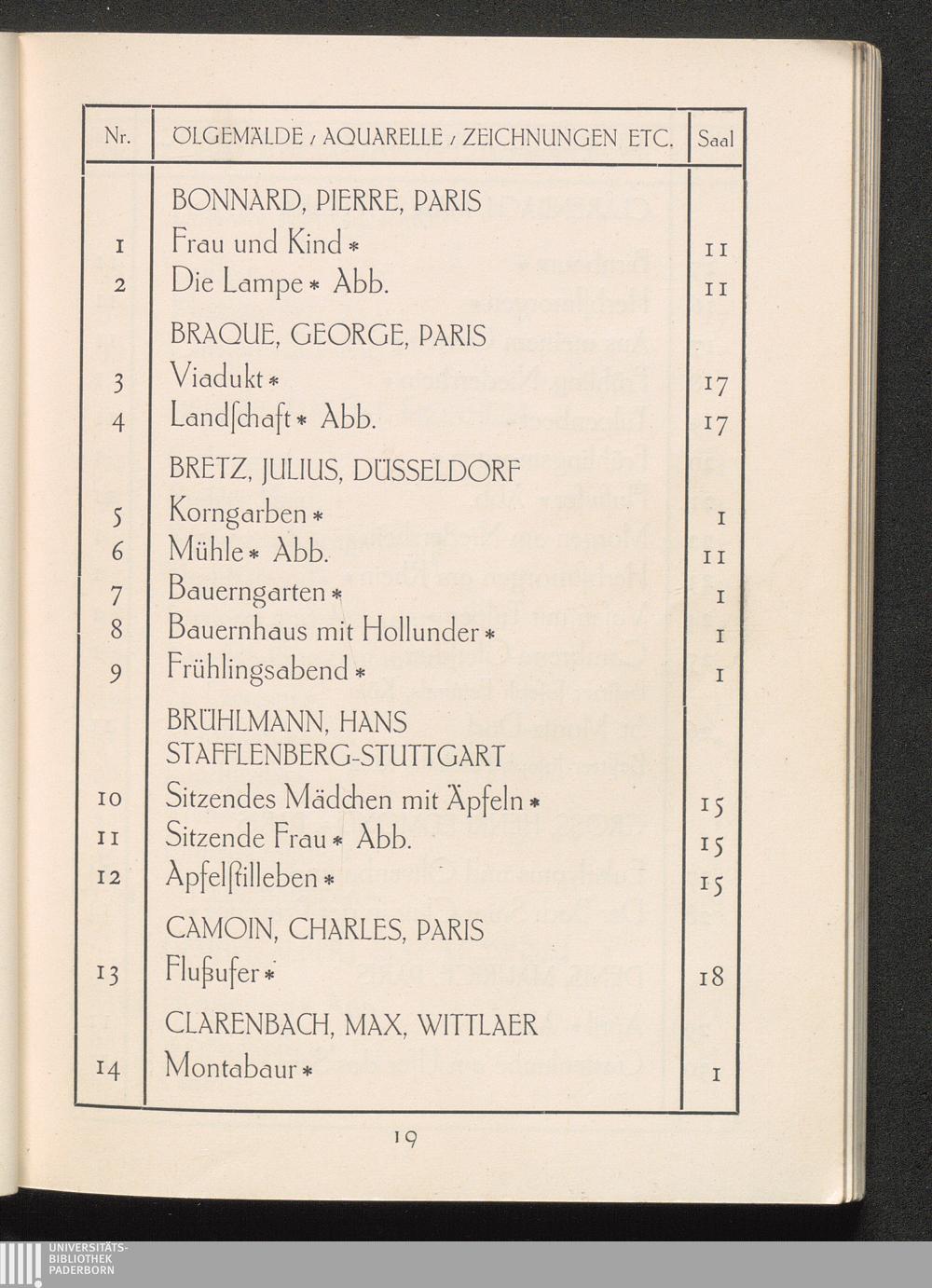 Verzeichnis der ausgestellten Werke