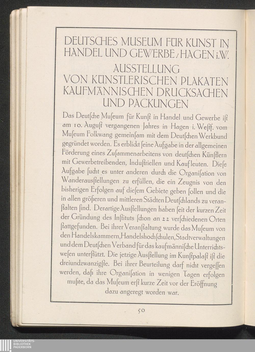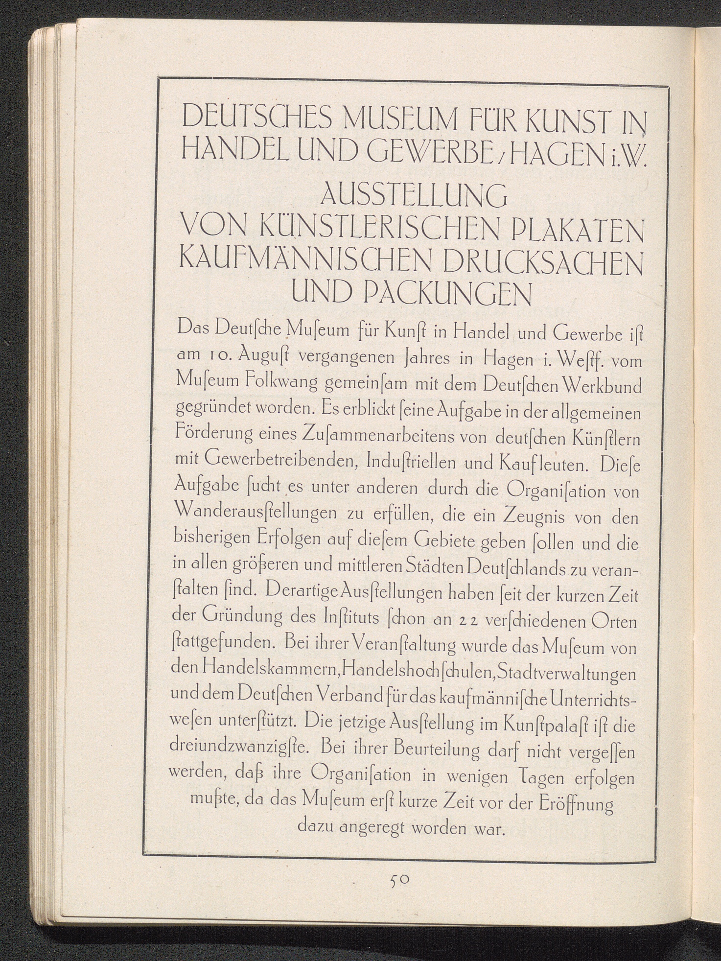 Wanderausstellung des Deutschen Museums für Kunst in Handel und Gewerbe, Hagen i. W.