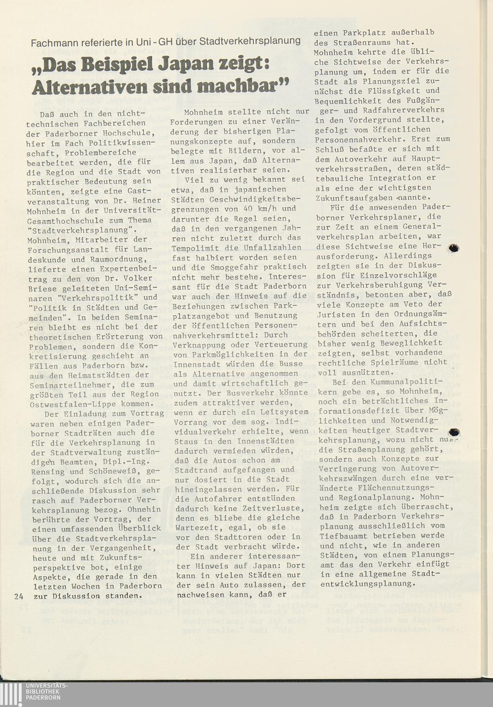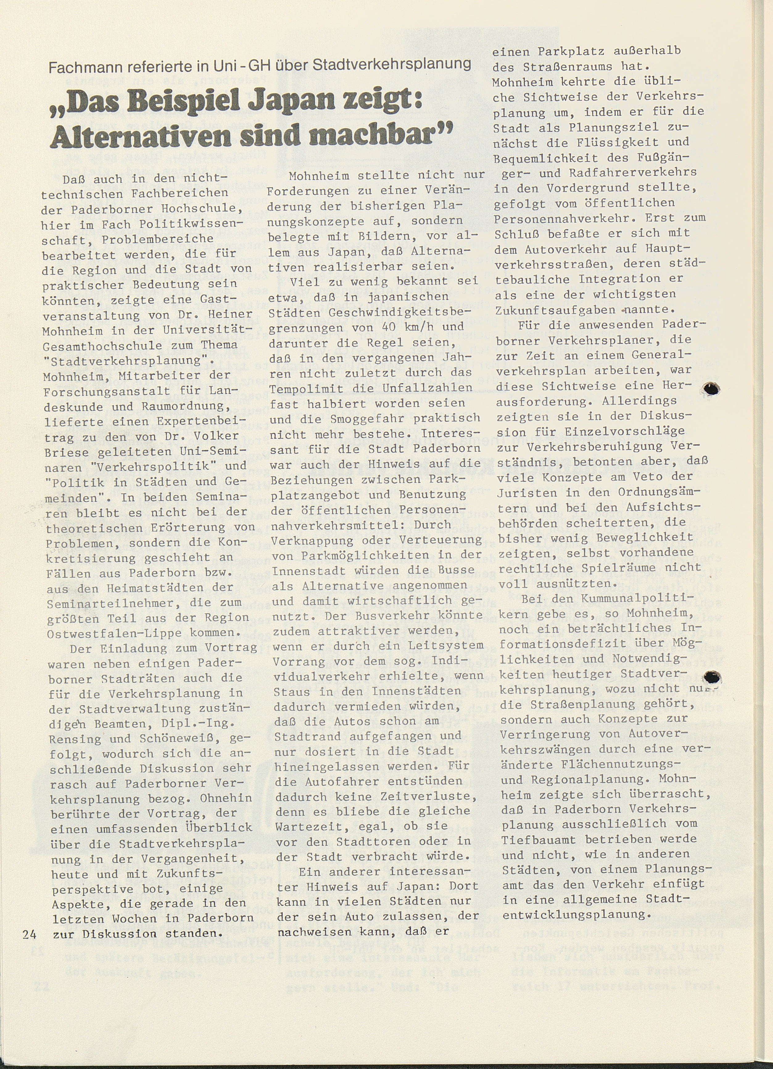 Experte referierte in Uni-GH über "Stadtverkehrsplanung"