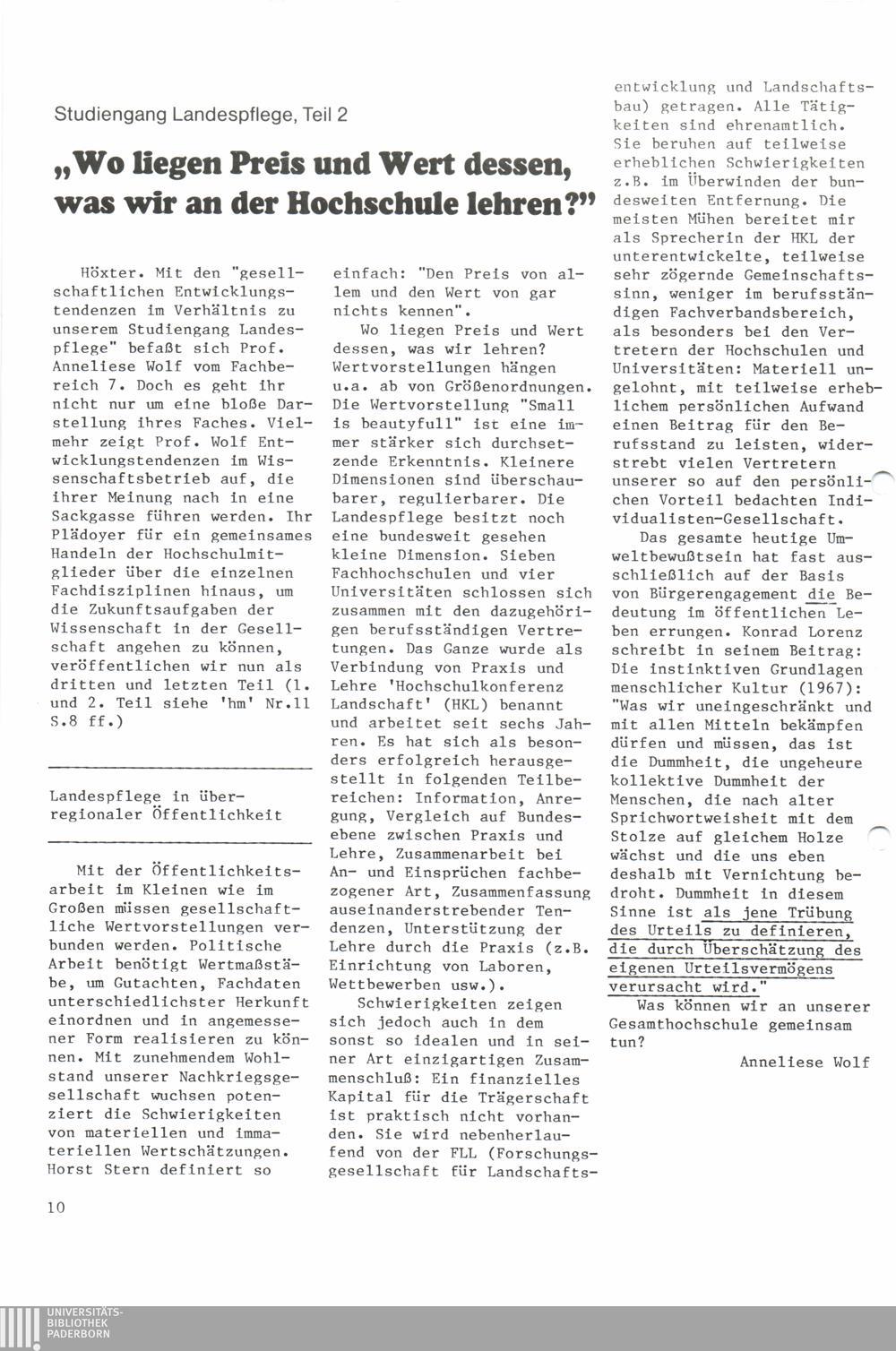 Studiengang Landespflege, Teil 2