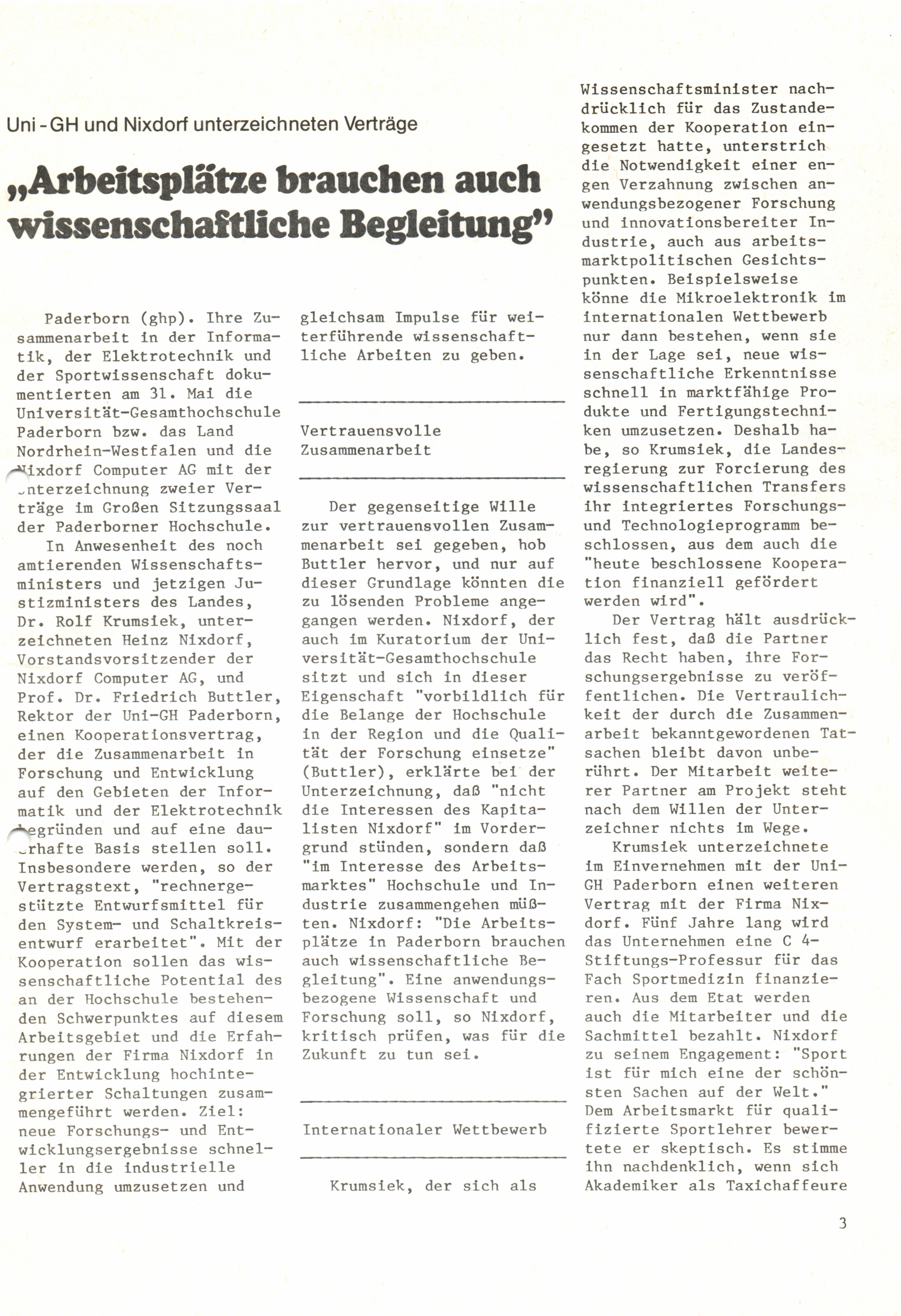 Kooperationsvertrag mit Nixdorf Computer AG