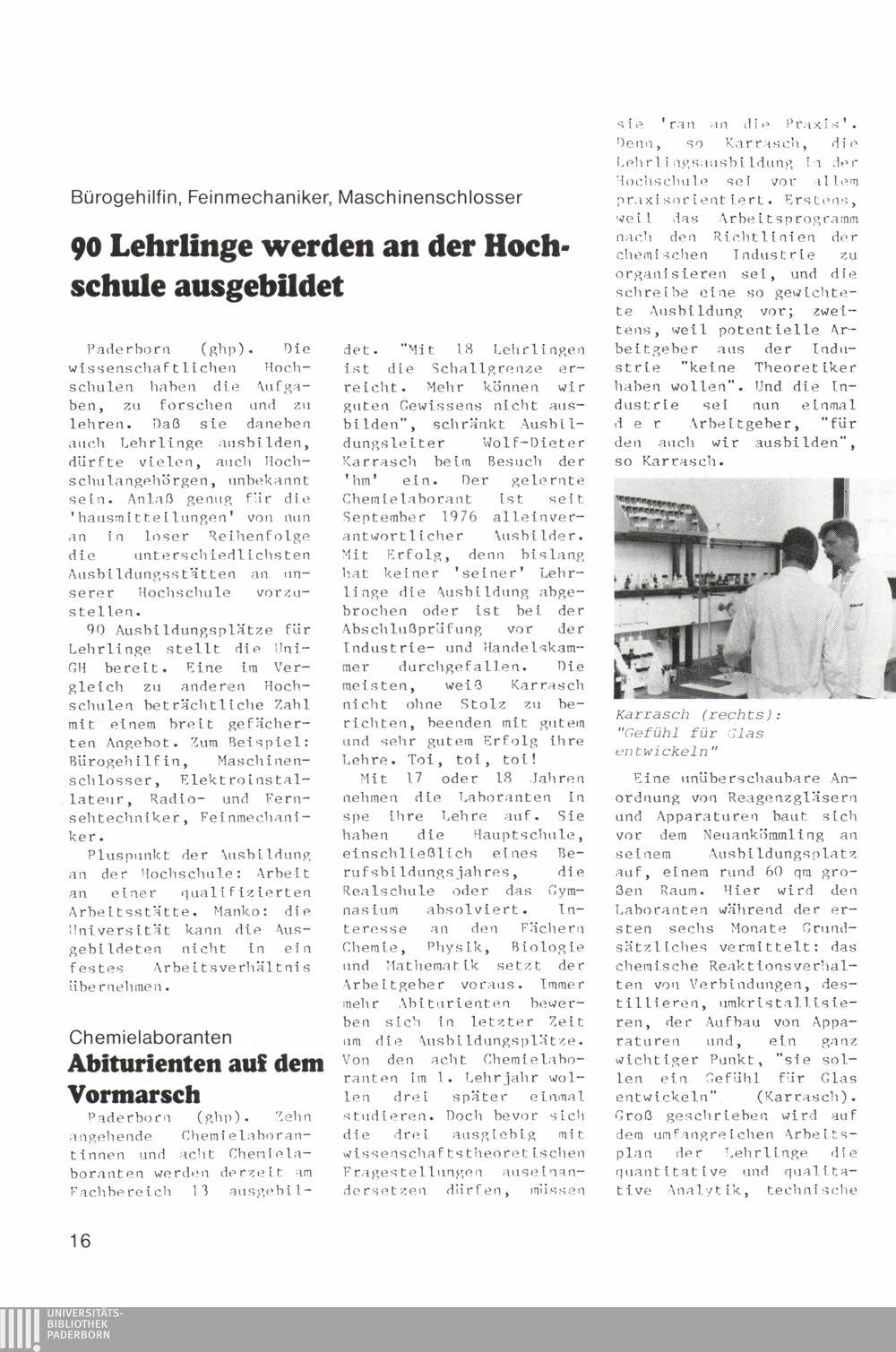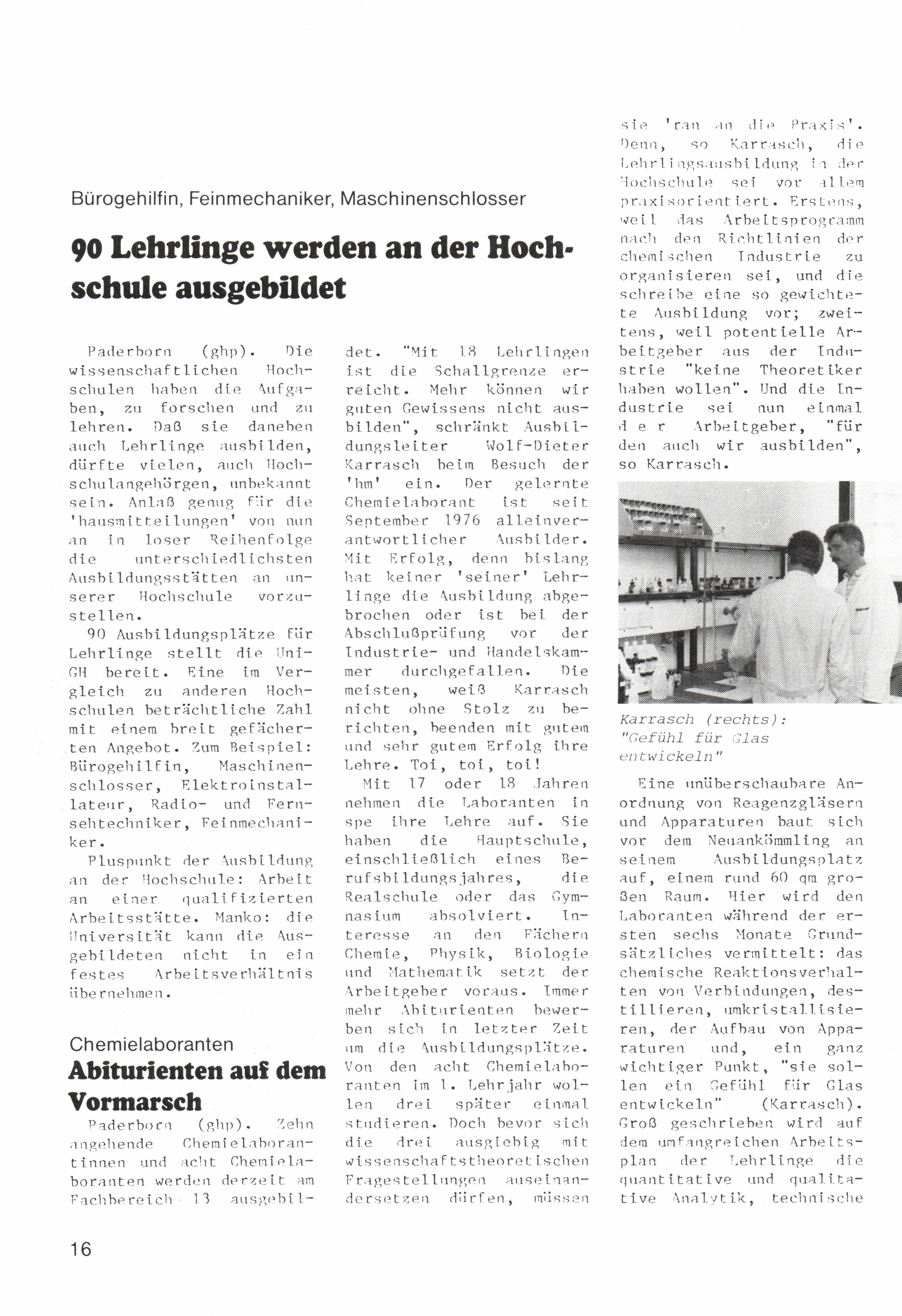 Lehrlingsausbildung: Chemielaboranten