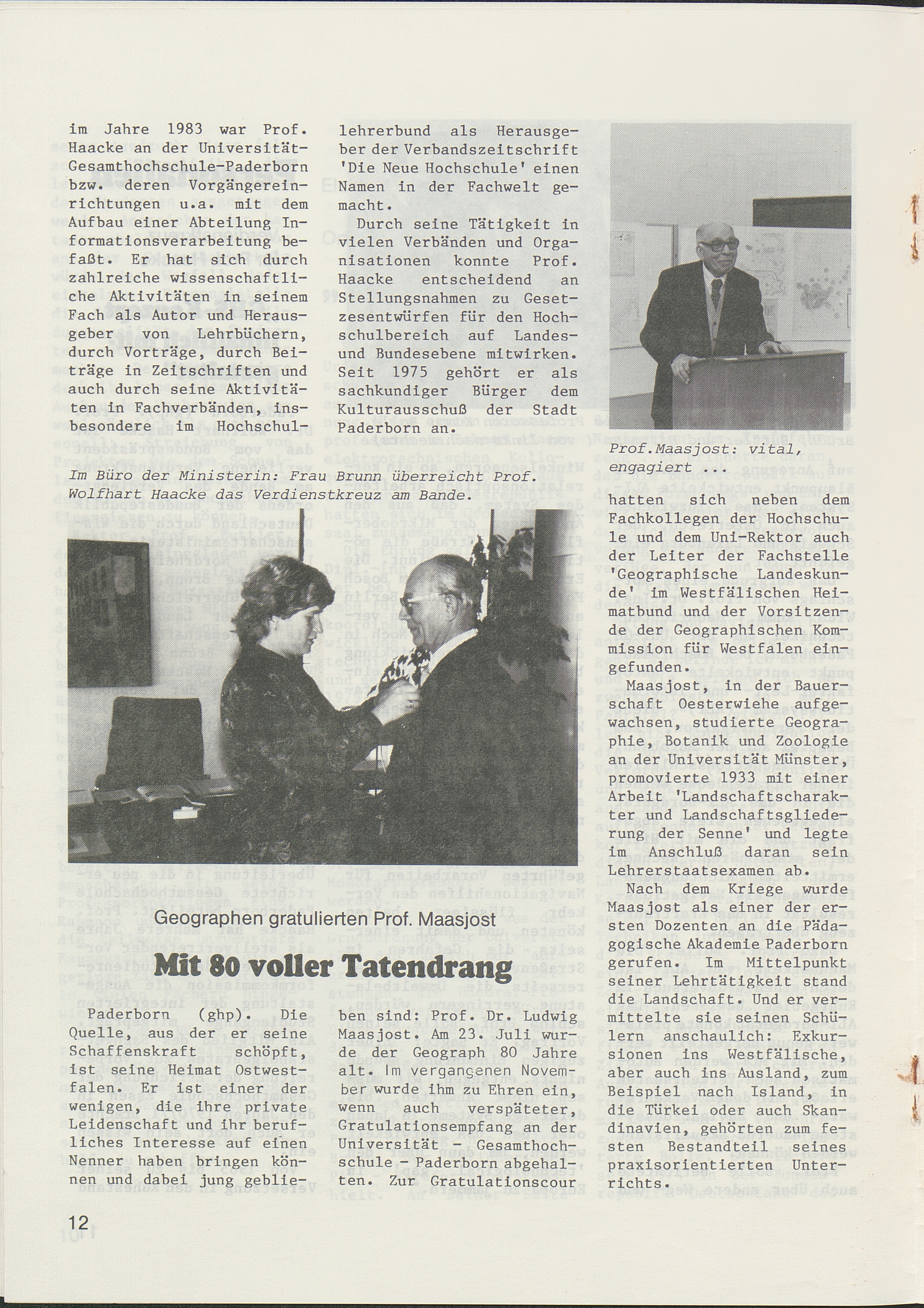 Prof. Maasjost 80 Jahre alt