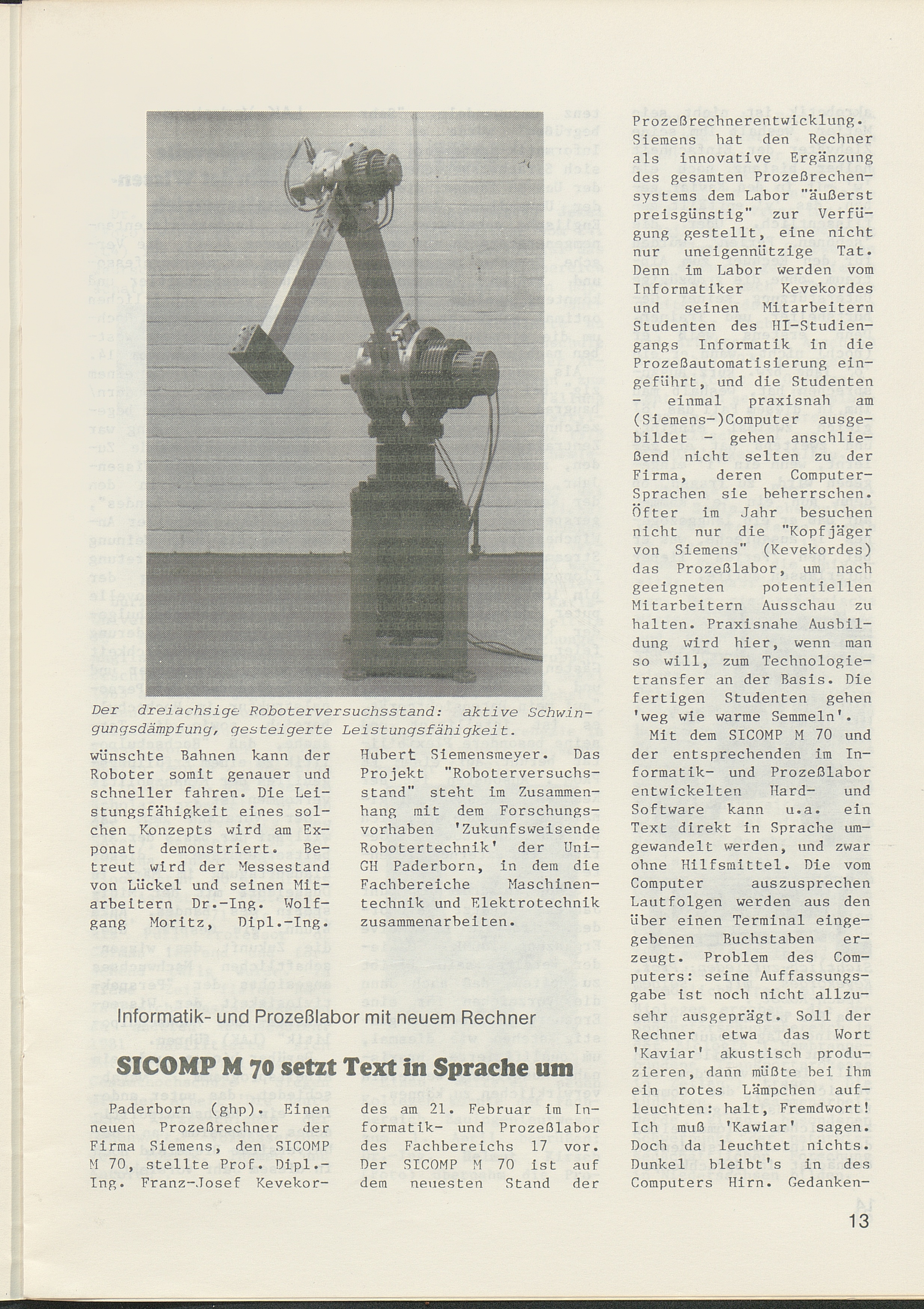 Neuer Prozeßrechner für Prof. Kevekordes