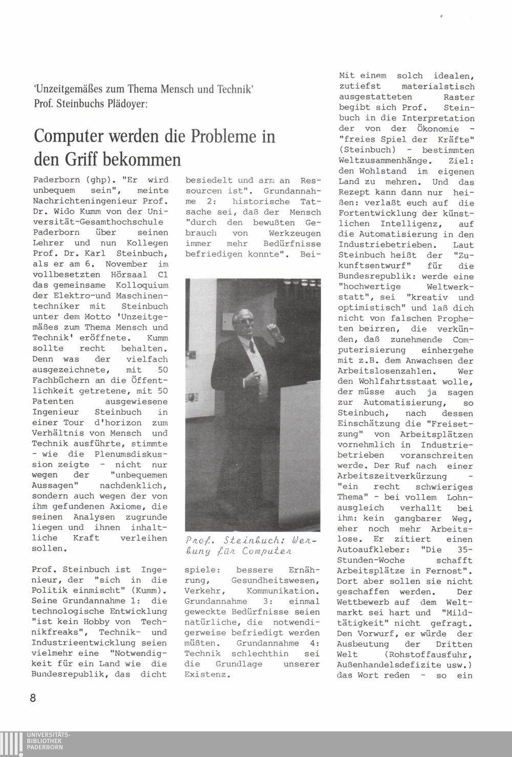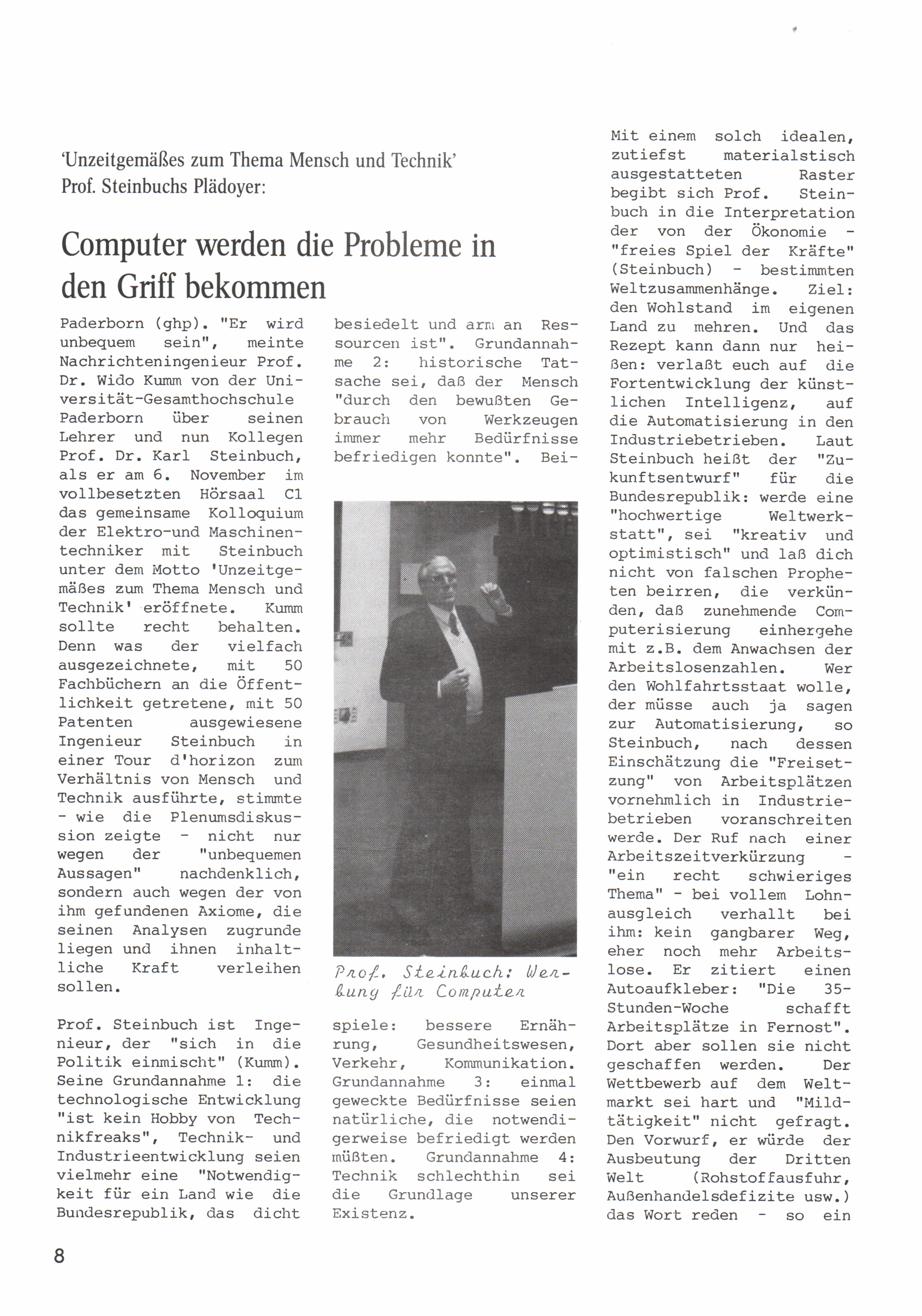Prof. Steinbuch: Unzeitgemäßes