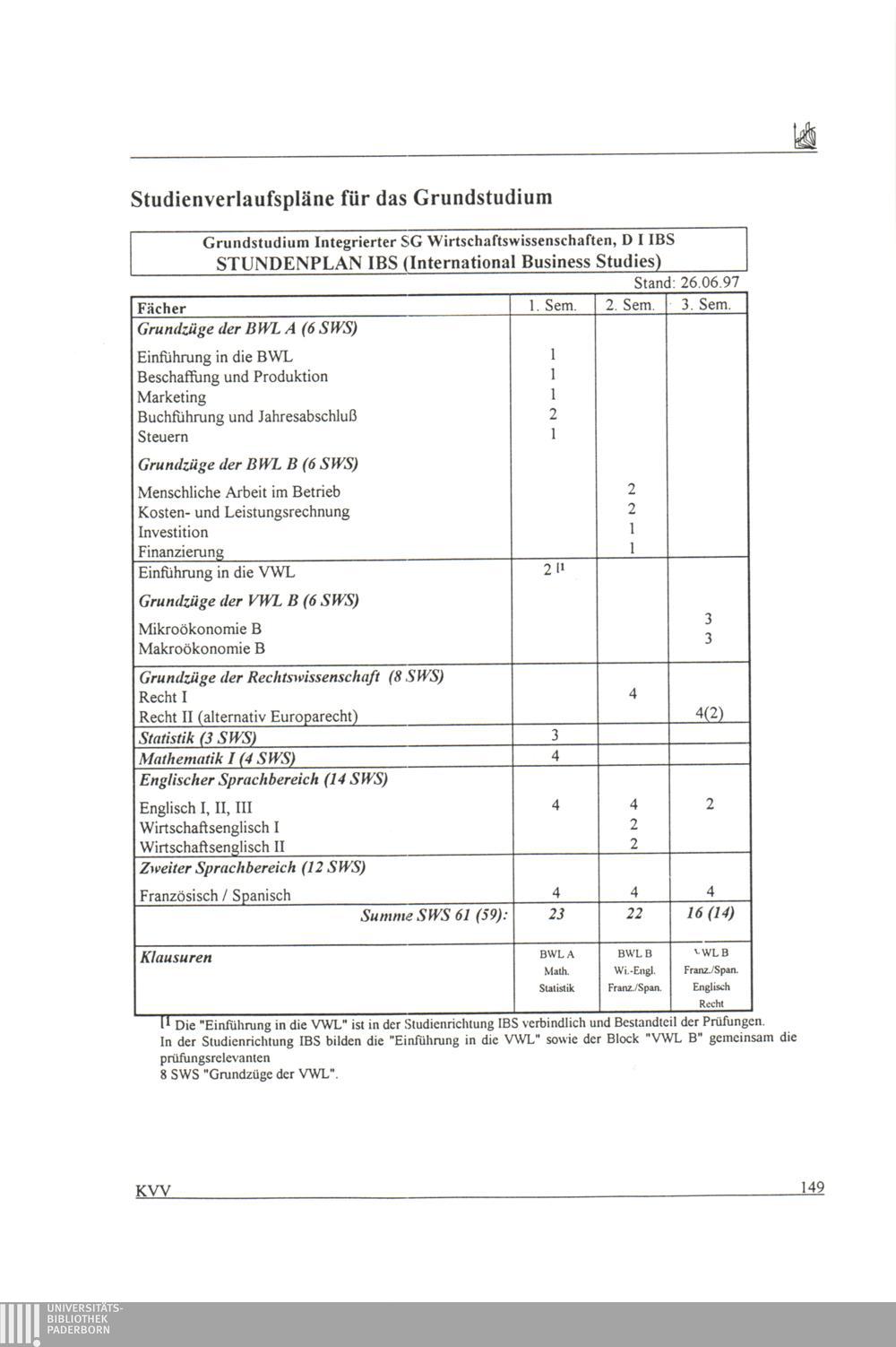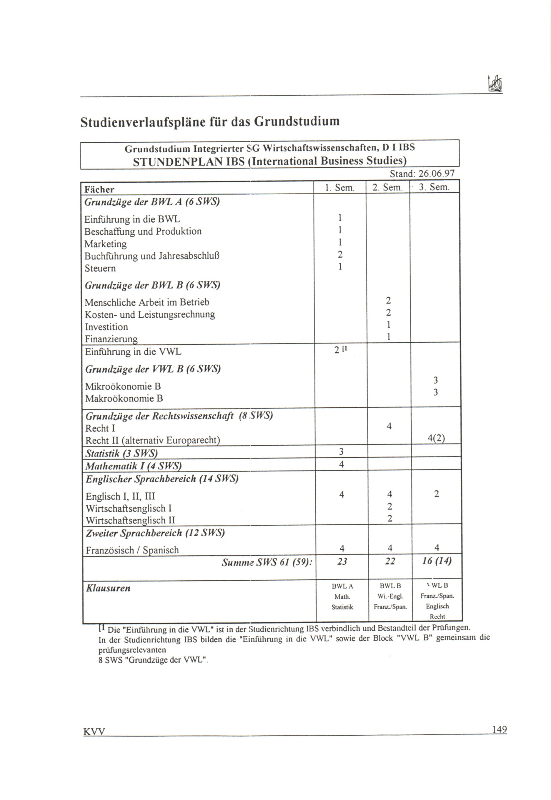 Studienverlaufspläne für das Grundstudium