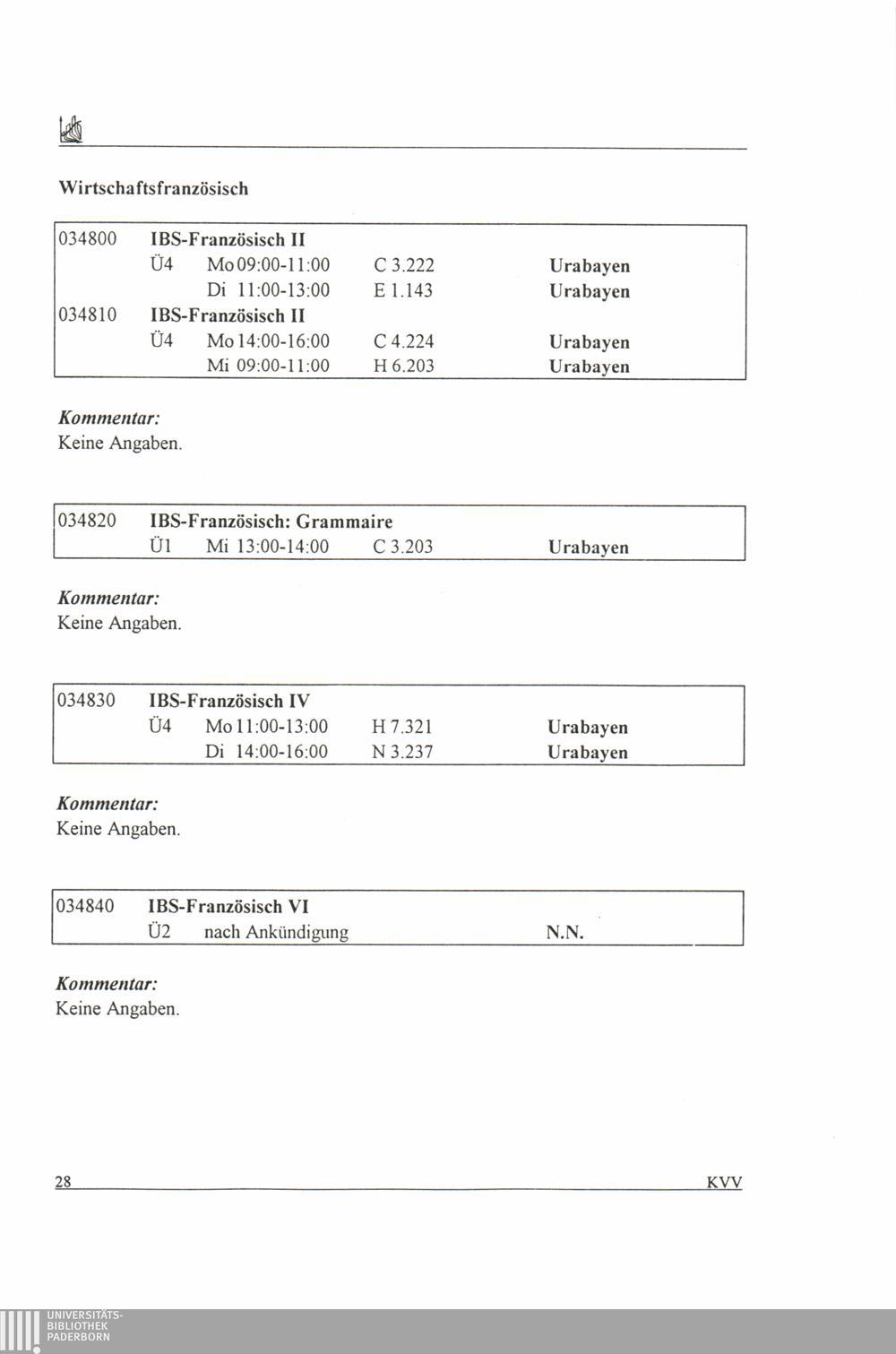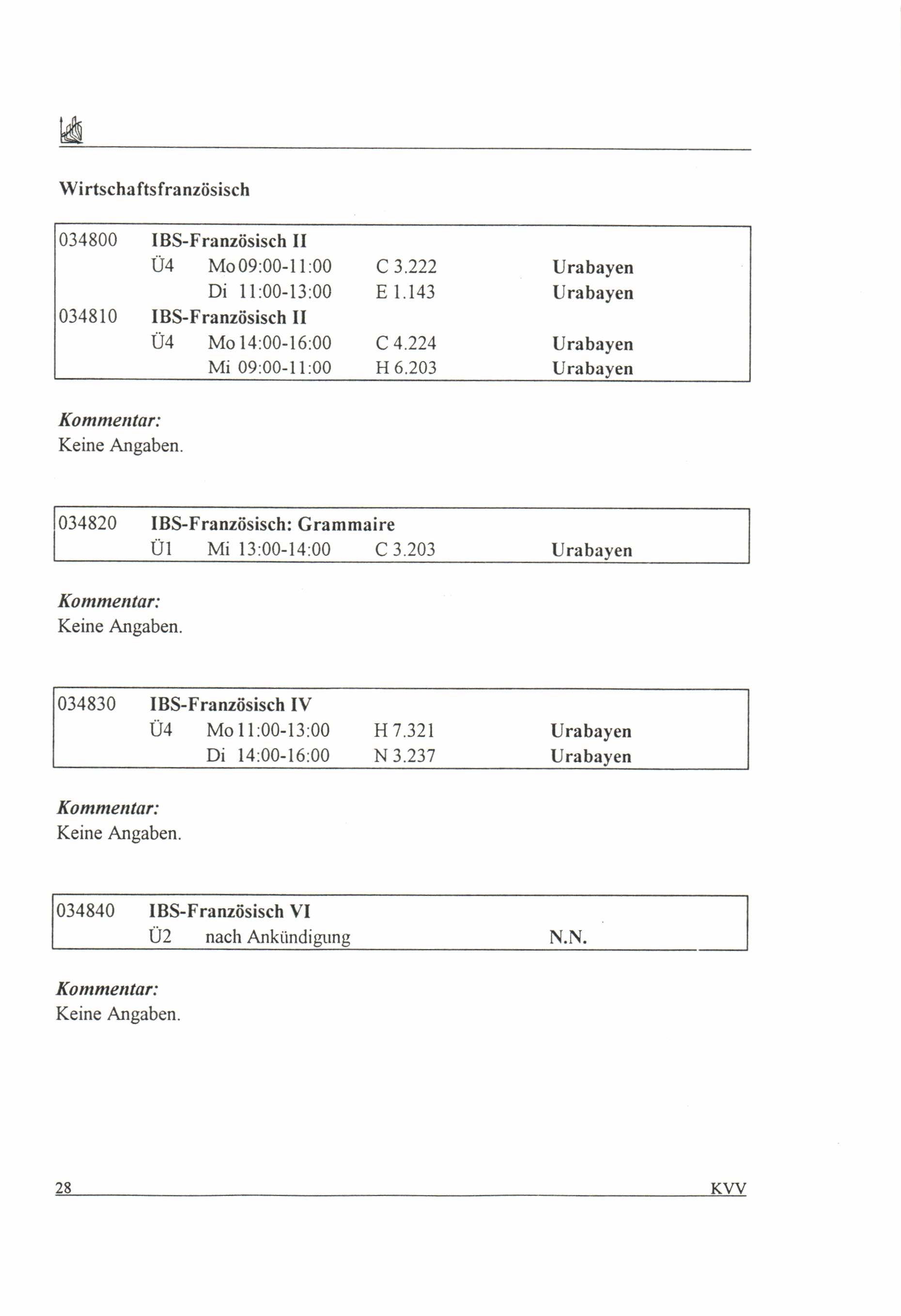 Kommentiertes Vorlesungsverzeichnis
