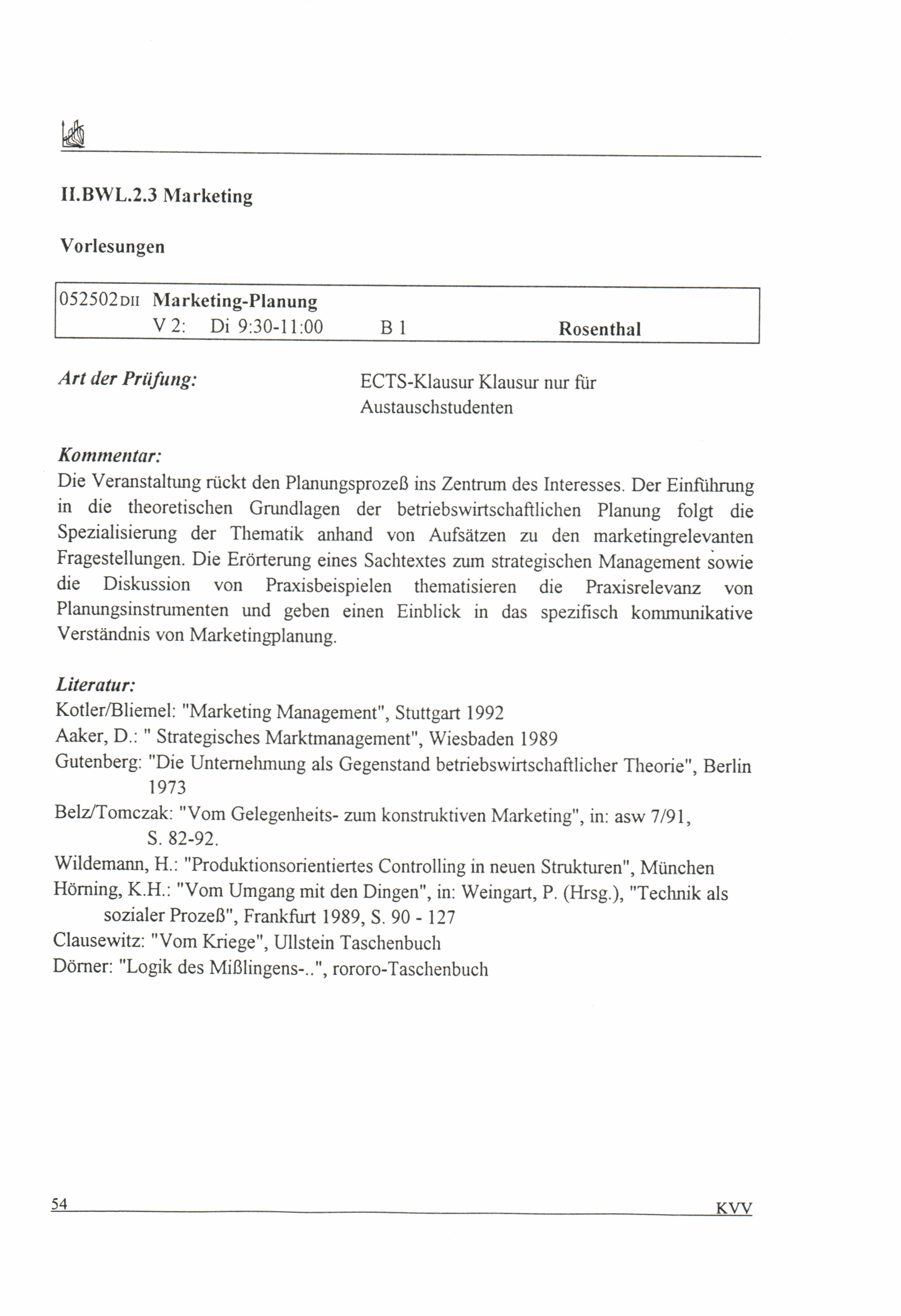 Kommentiertes Vorlesungsverzeichnis