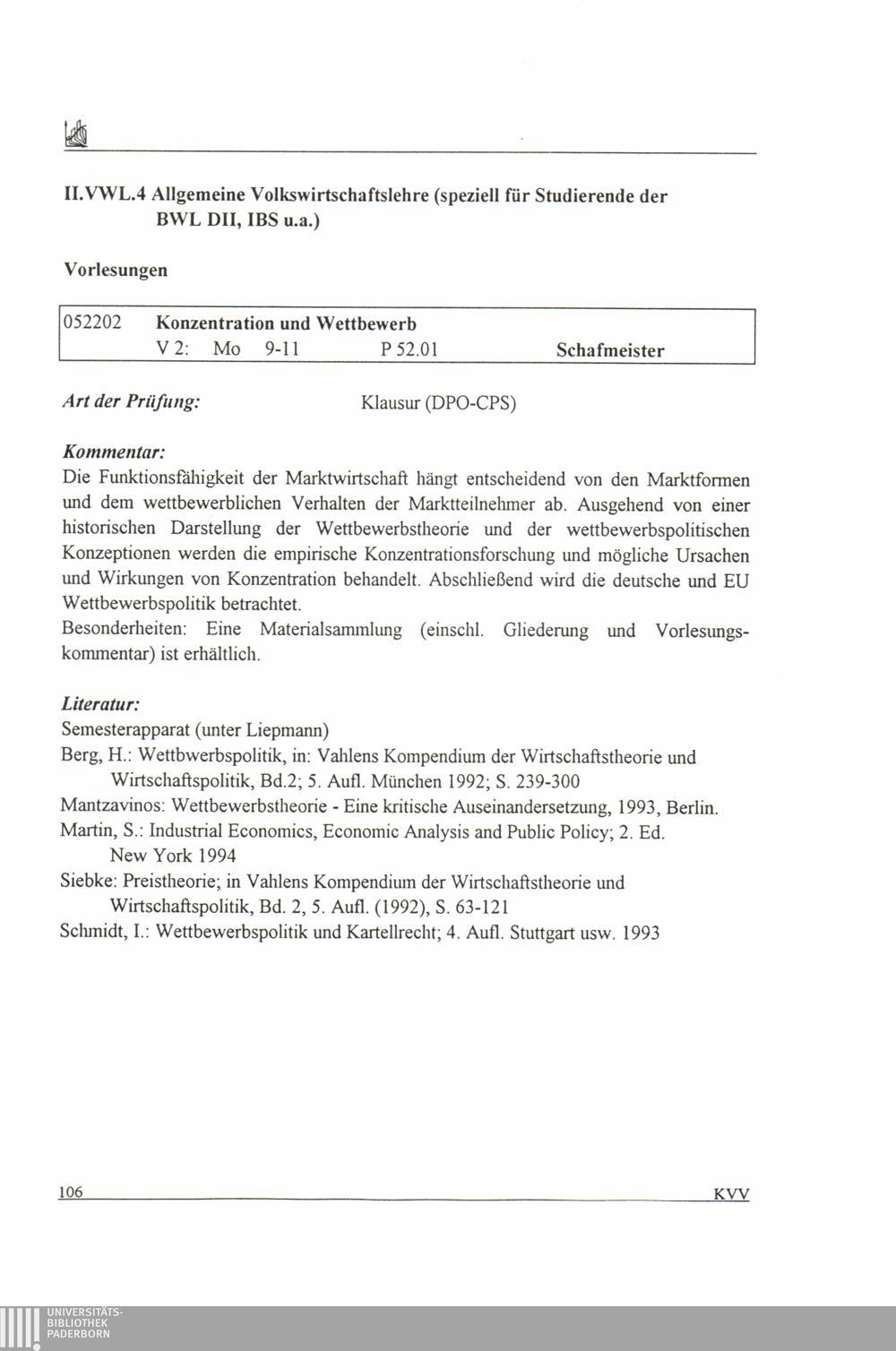 II.VWL.4 Allgemeine Volkswirtschaftslehre (speziell für Studierende der BWL DII,[...]