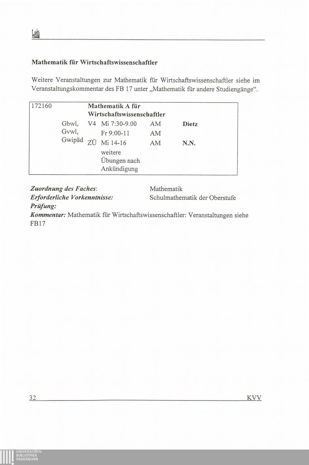 B. Integriertes Grundstudium für die Studiengänge Wirtschaftswissenschaften (IBS,[...]