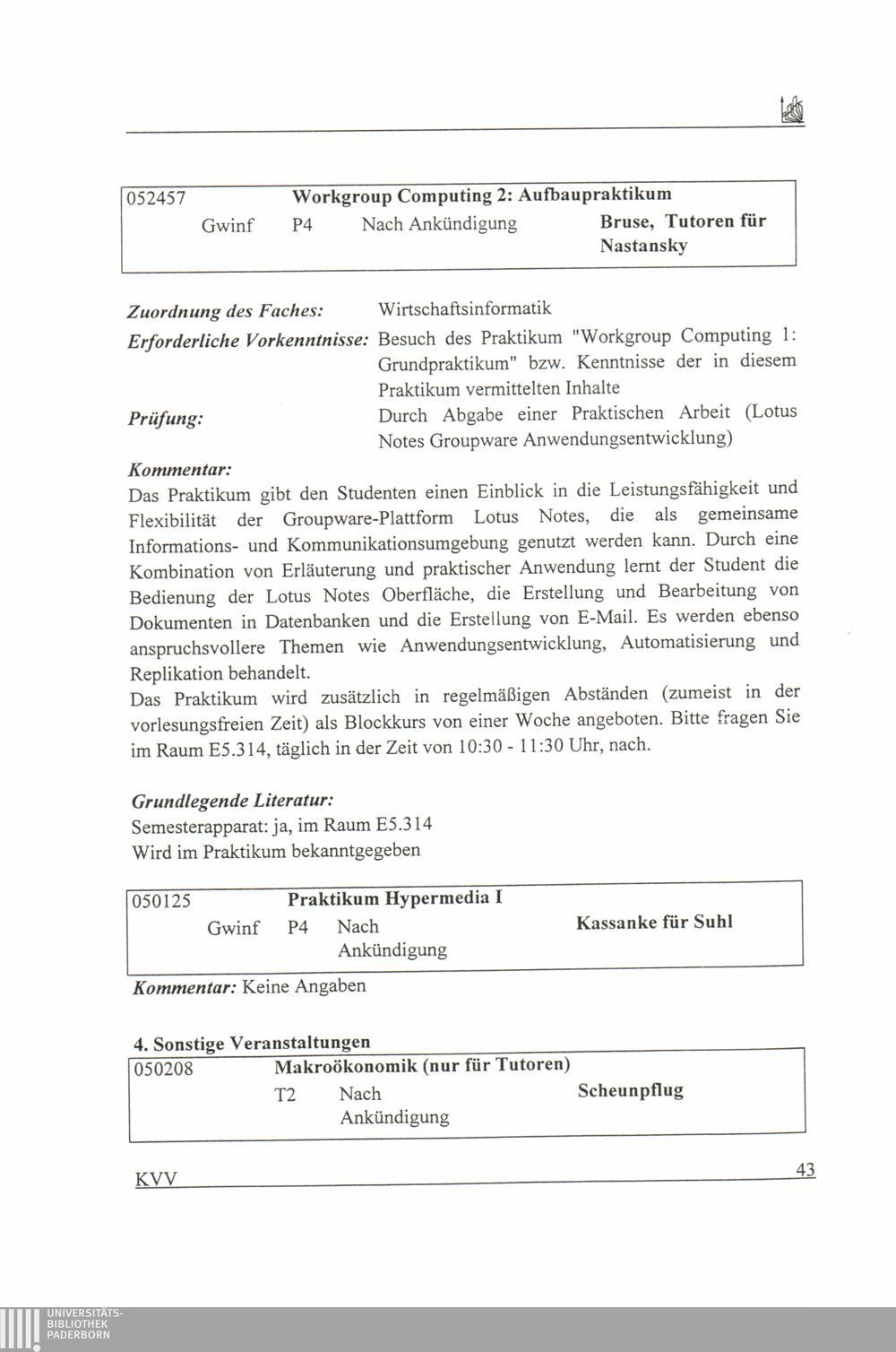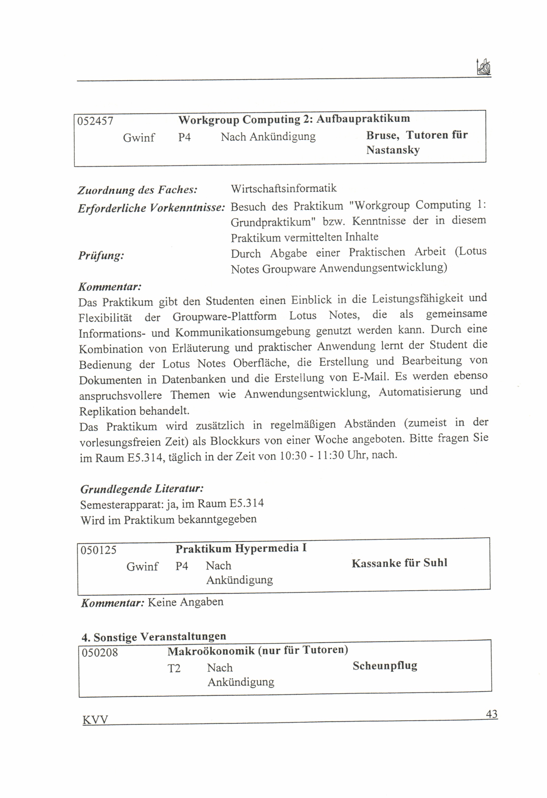 Kommentiertes Vorlesungsverzeichnis