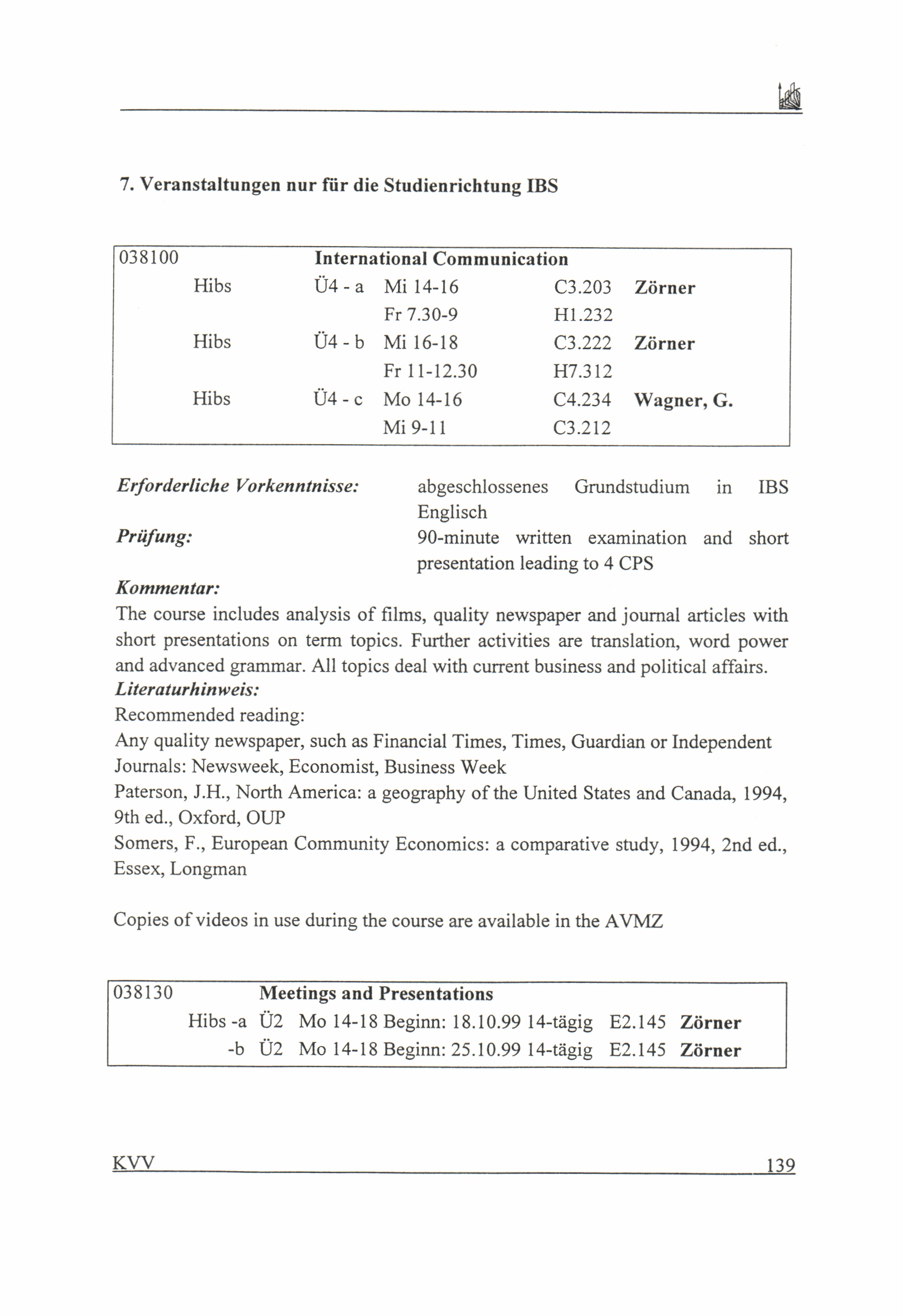 Kommentiertes Vorlesungsverzeichnis