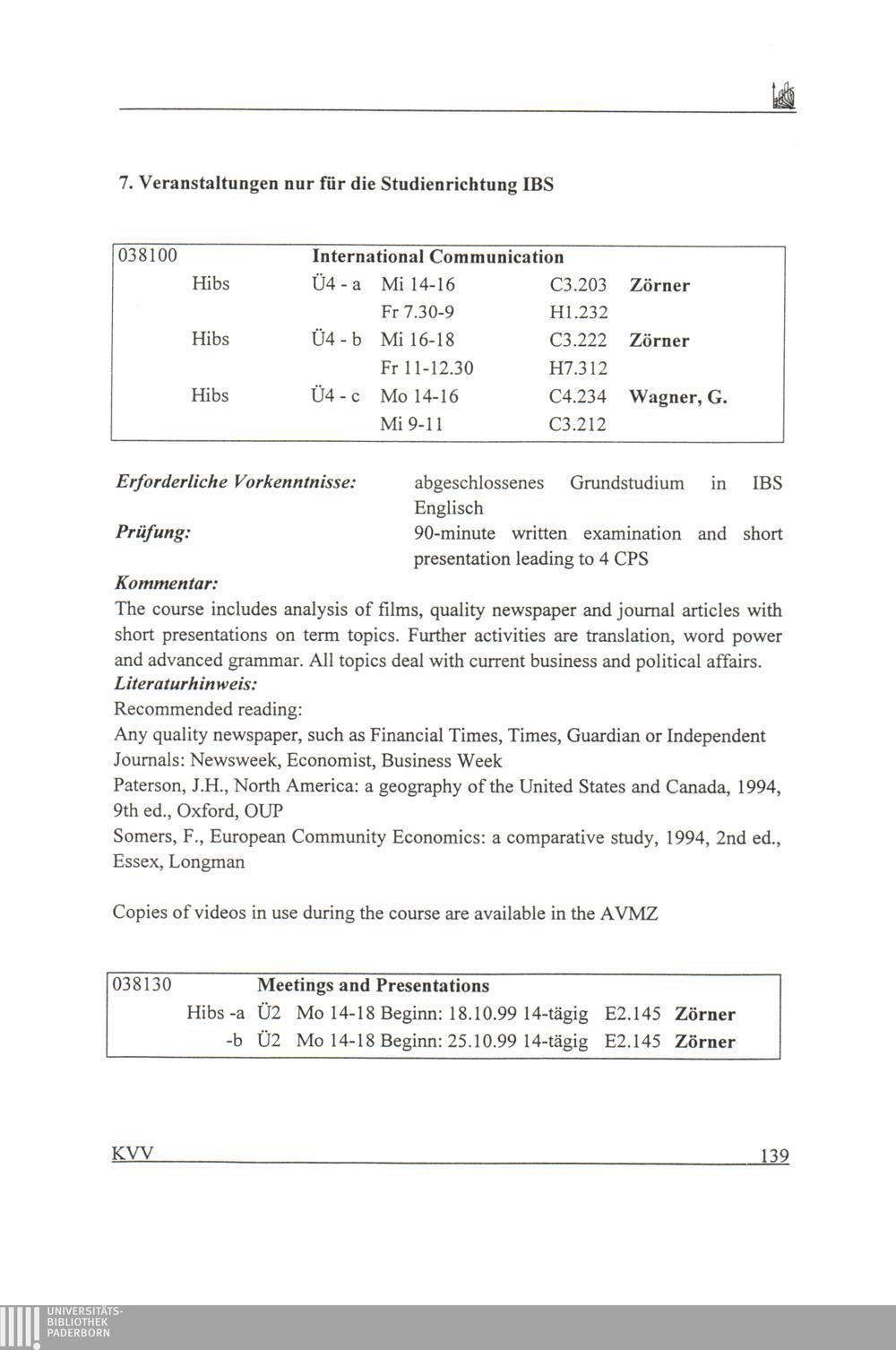 7. Veranstaltungen nur für die Studienrichtung IBS