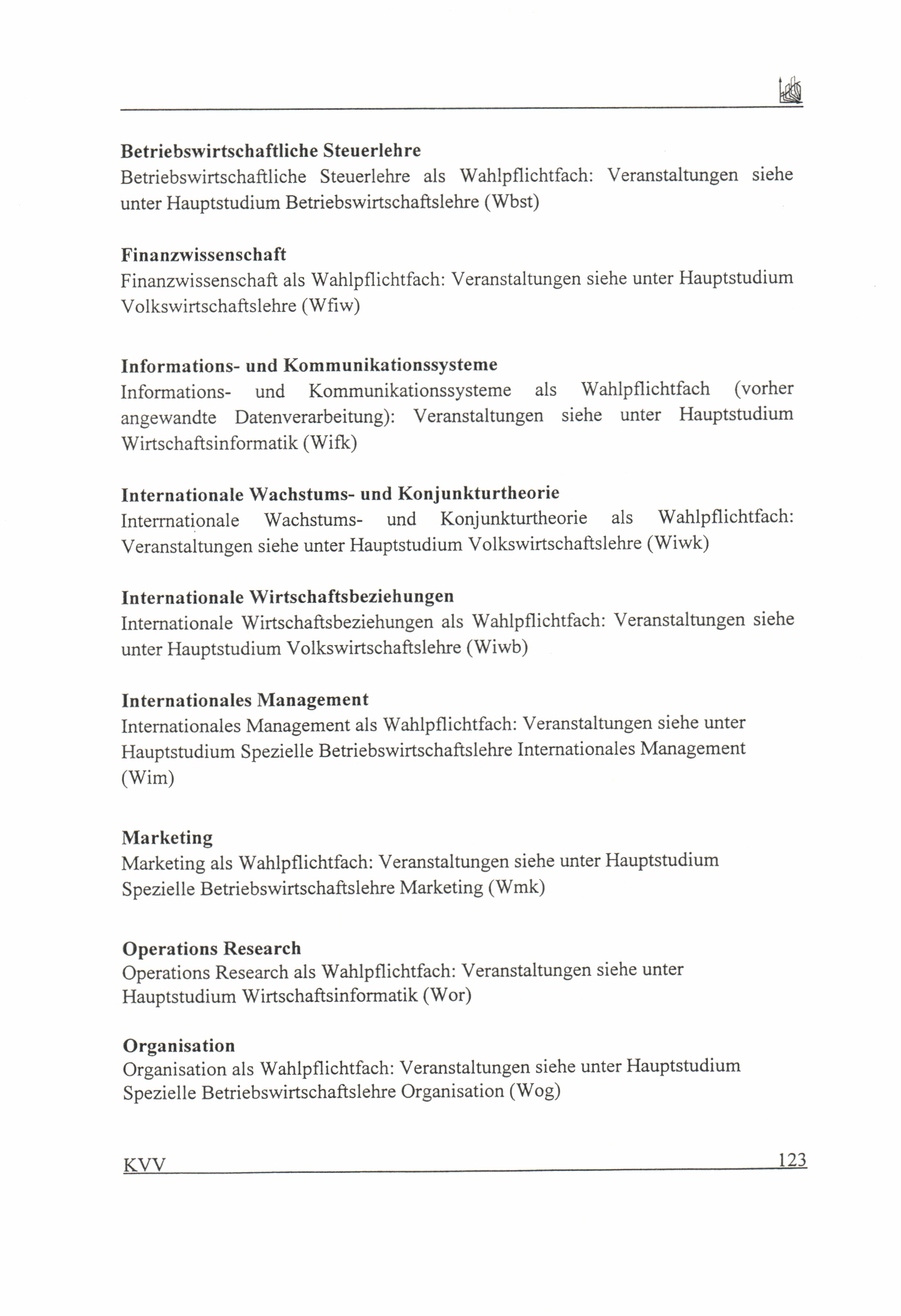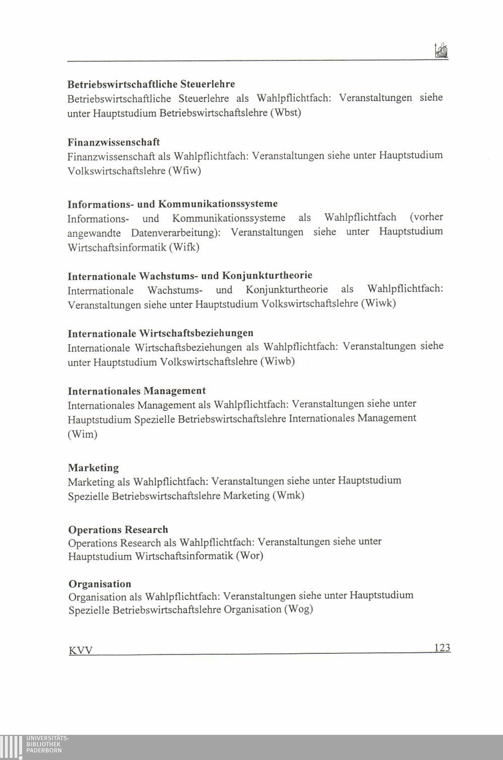 C. Hauptstudium für die Studiengänge Wirtschaftswissenschaften (IBS, BWL, VWL, WiPäd),[...]