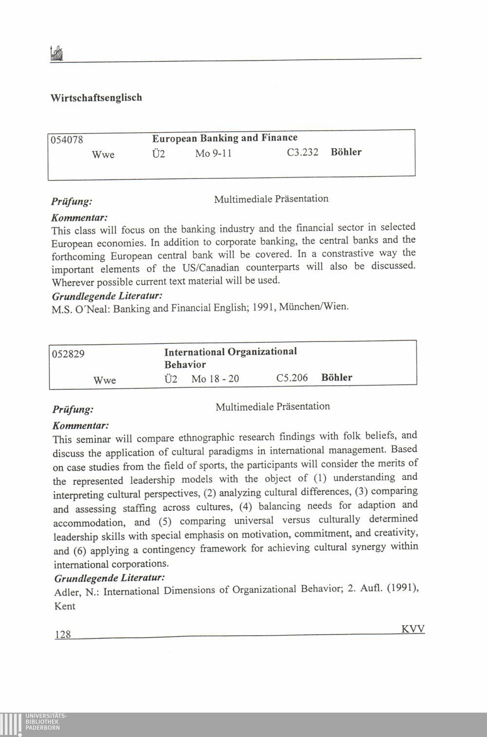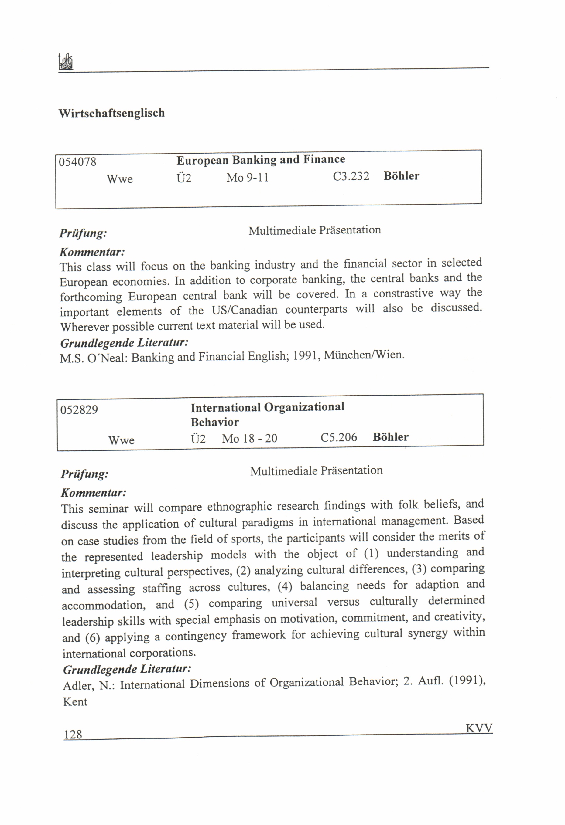 C. Hauptstudium für die Studiengänge Wirtschaftswissenschaften (IBS, BWL, VWL, WiPäd),[...]