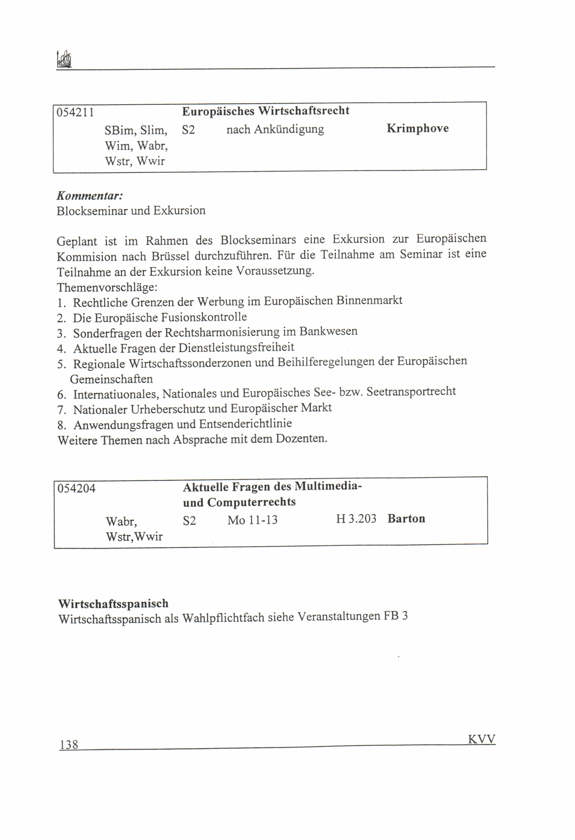 C. Hauptstudium für die Studiengänge Wirtschaftswissenschaften (IBS, BWL, VWL, WiPäd),[...]