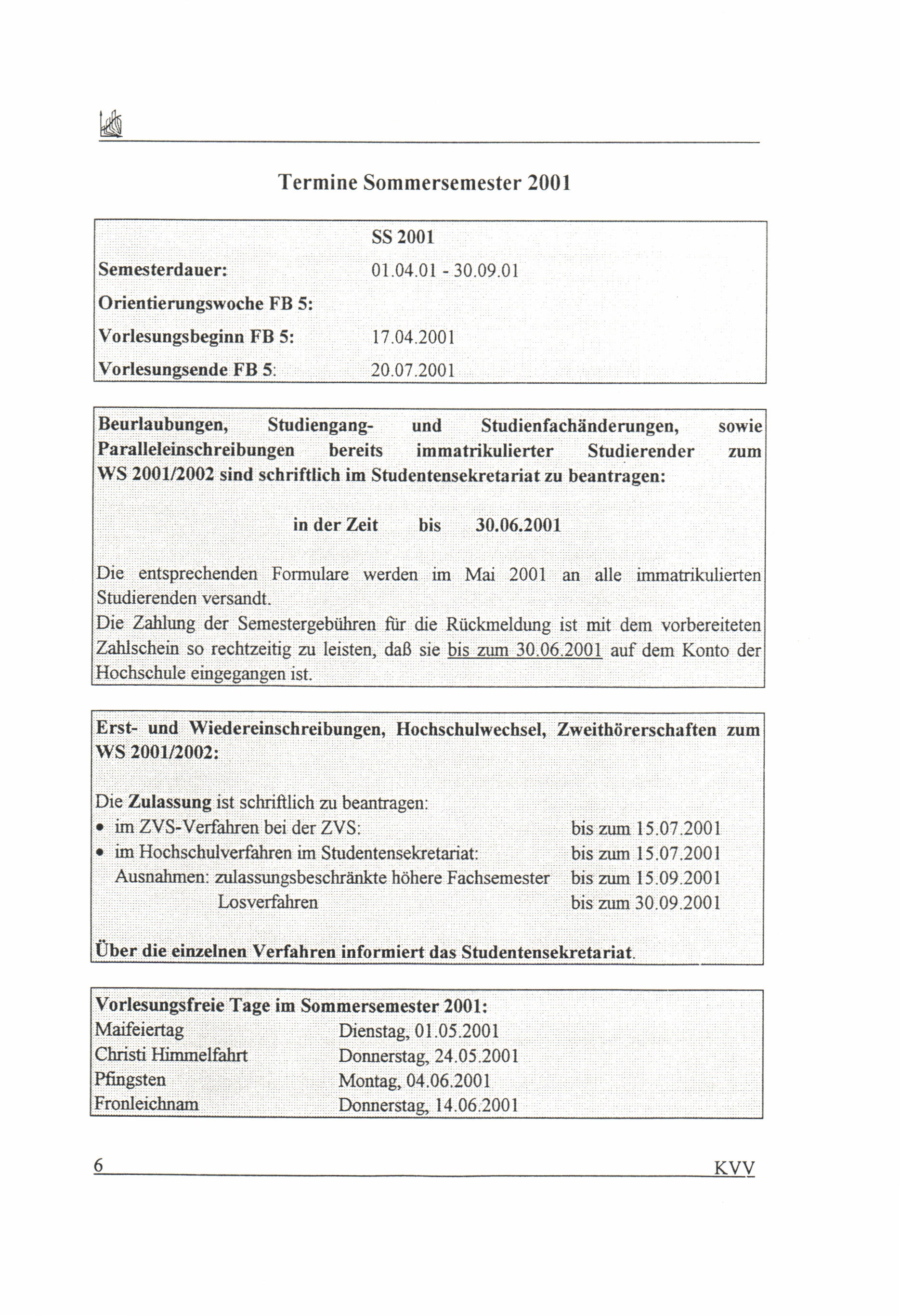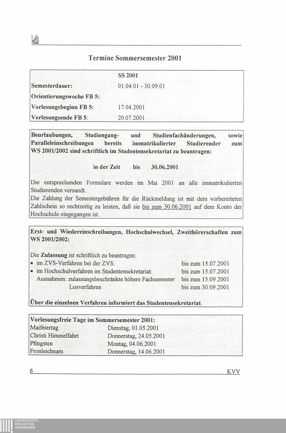 (2001) Sommersemester 2001