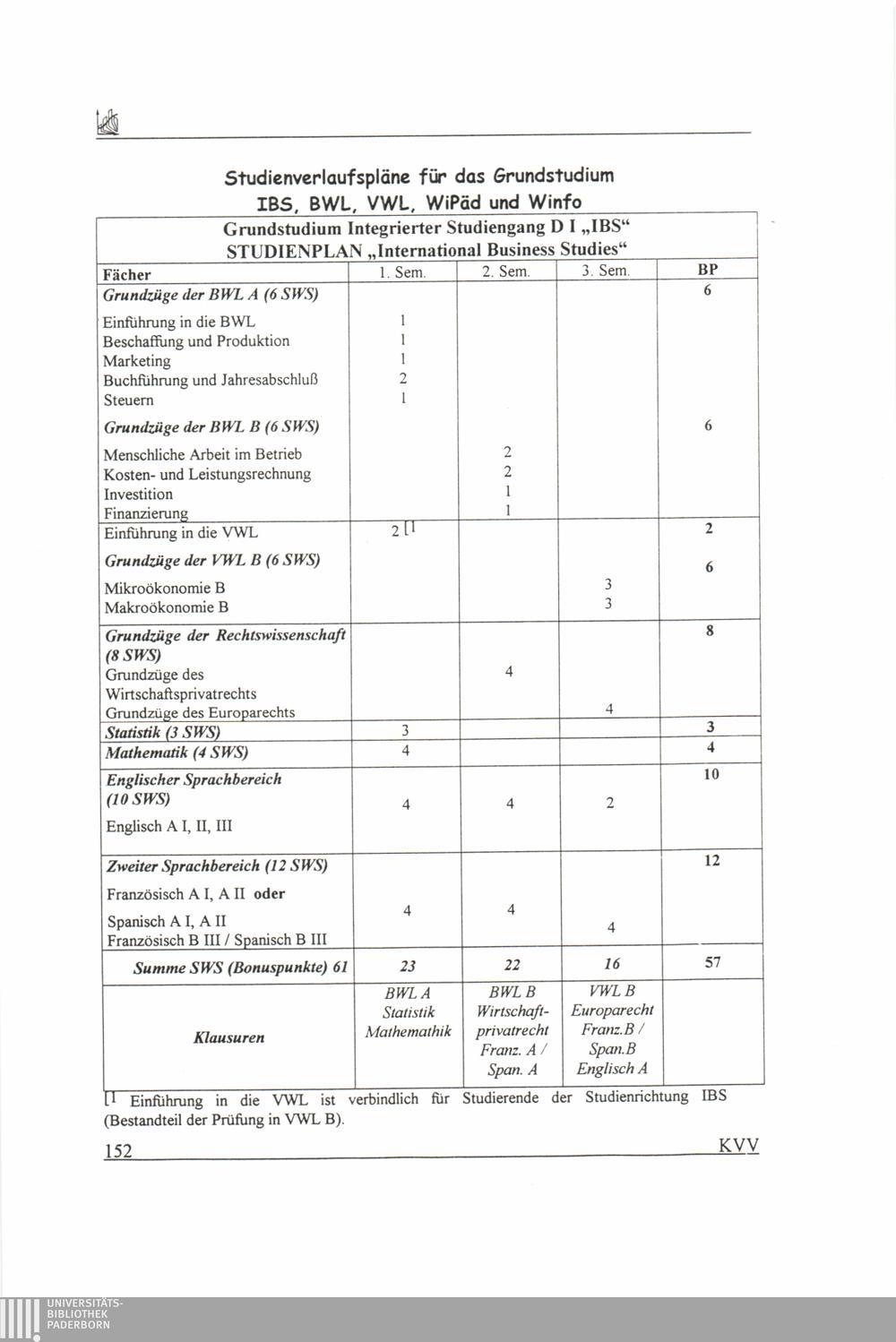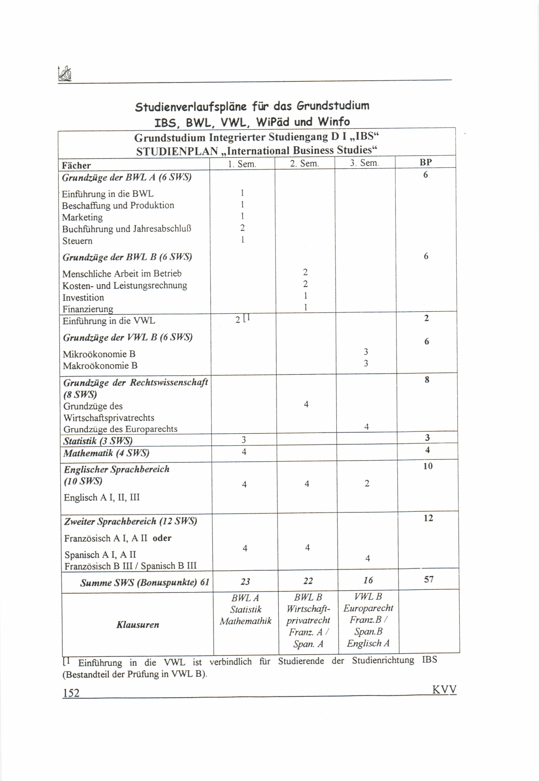 Studienverlaufspläne für das Grundstudium IBS, BWL, VWL, WiPäd und Winfo