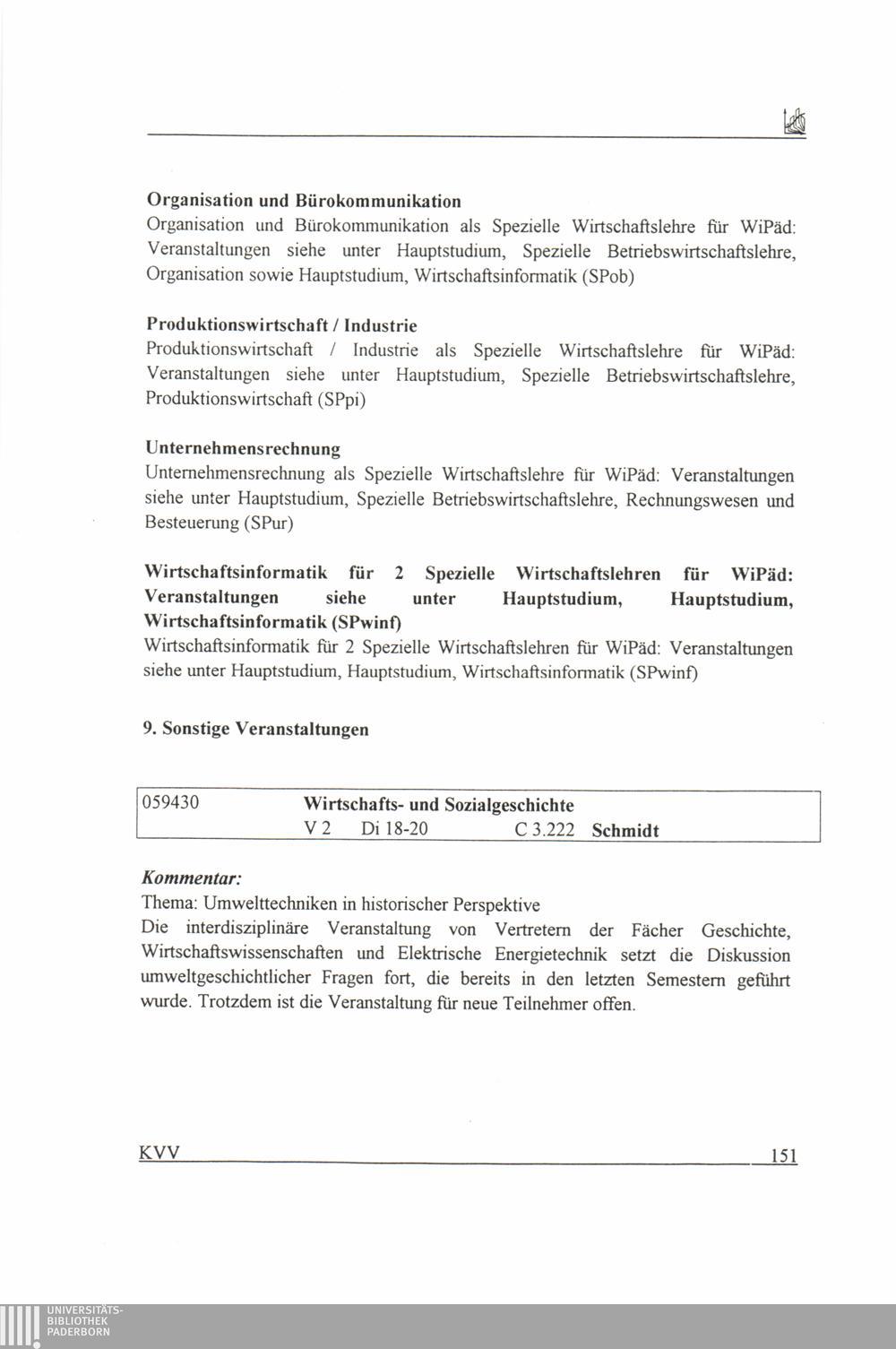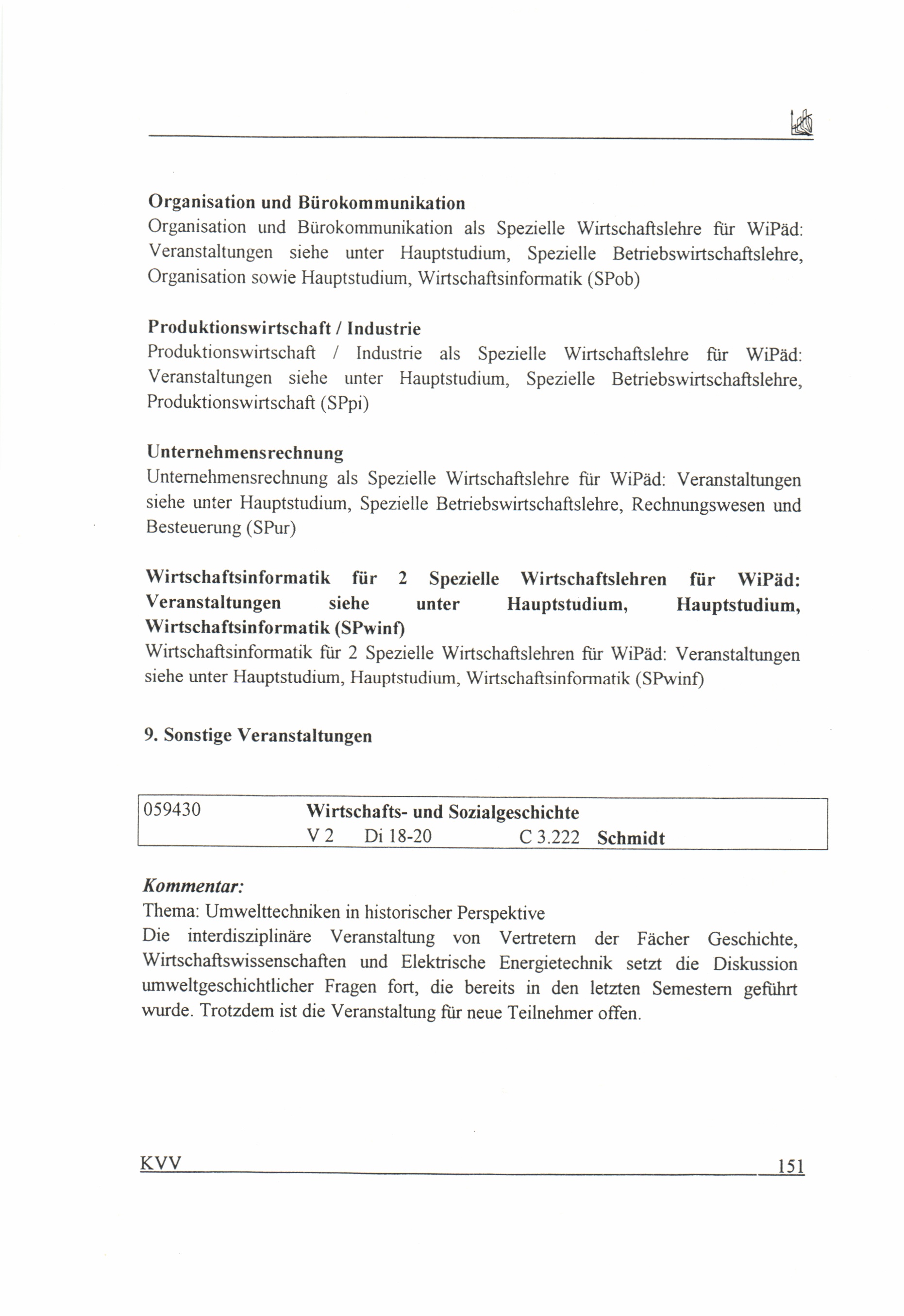 Kommentiertes Vorlesungsverzeichnis
