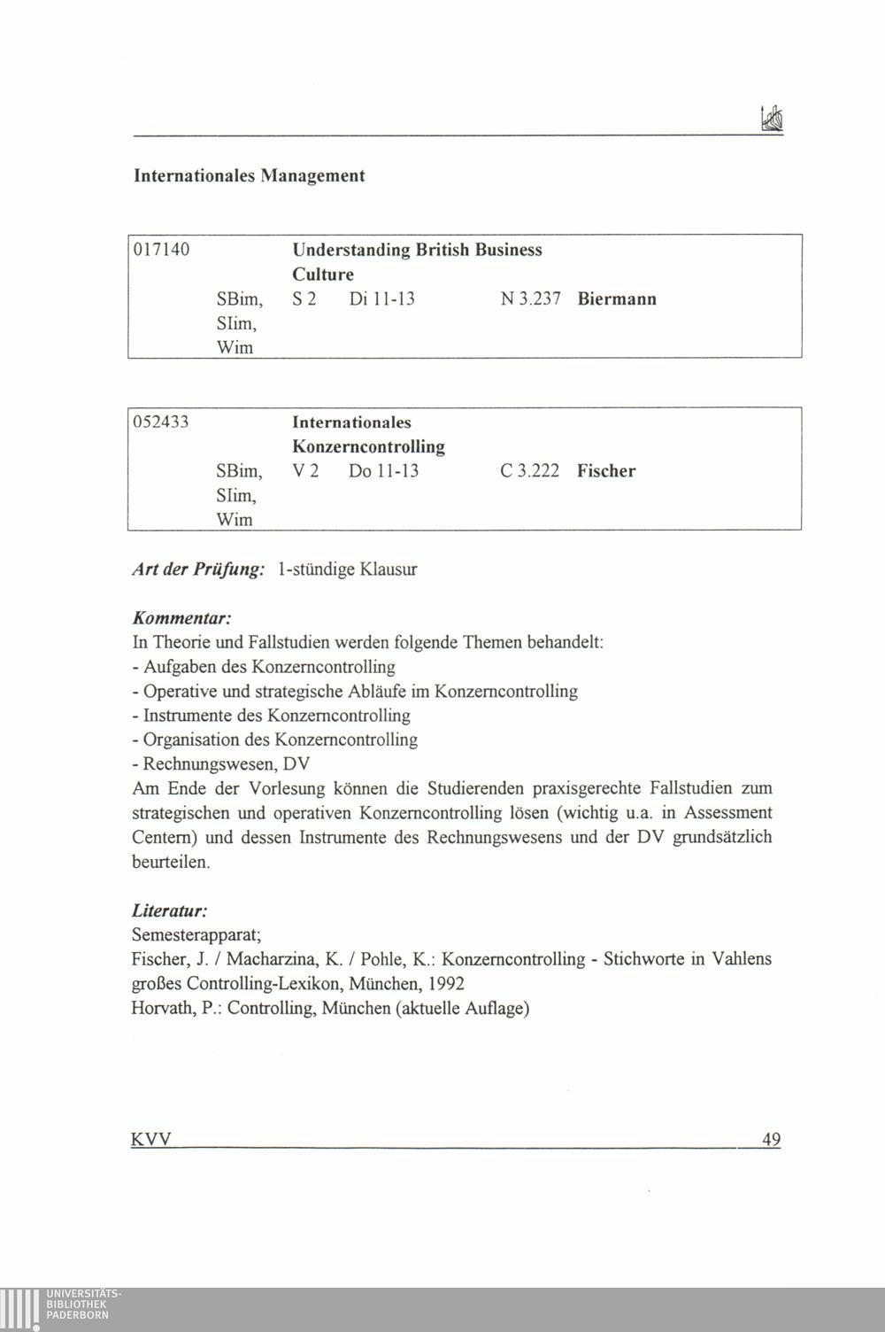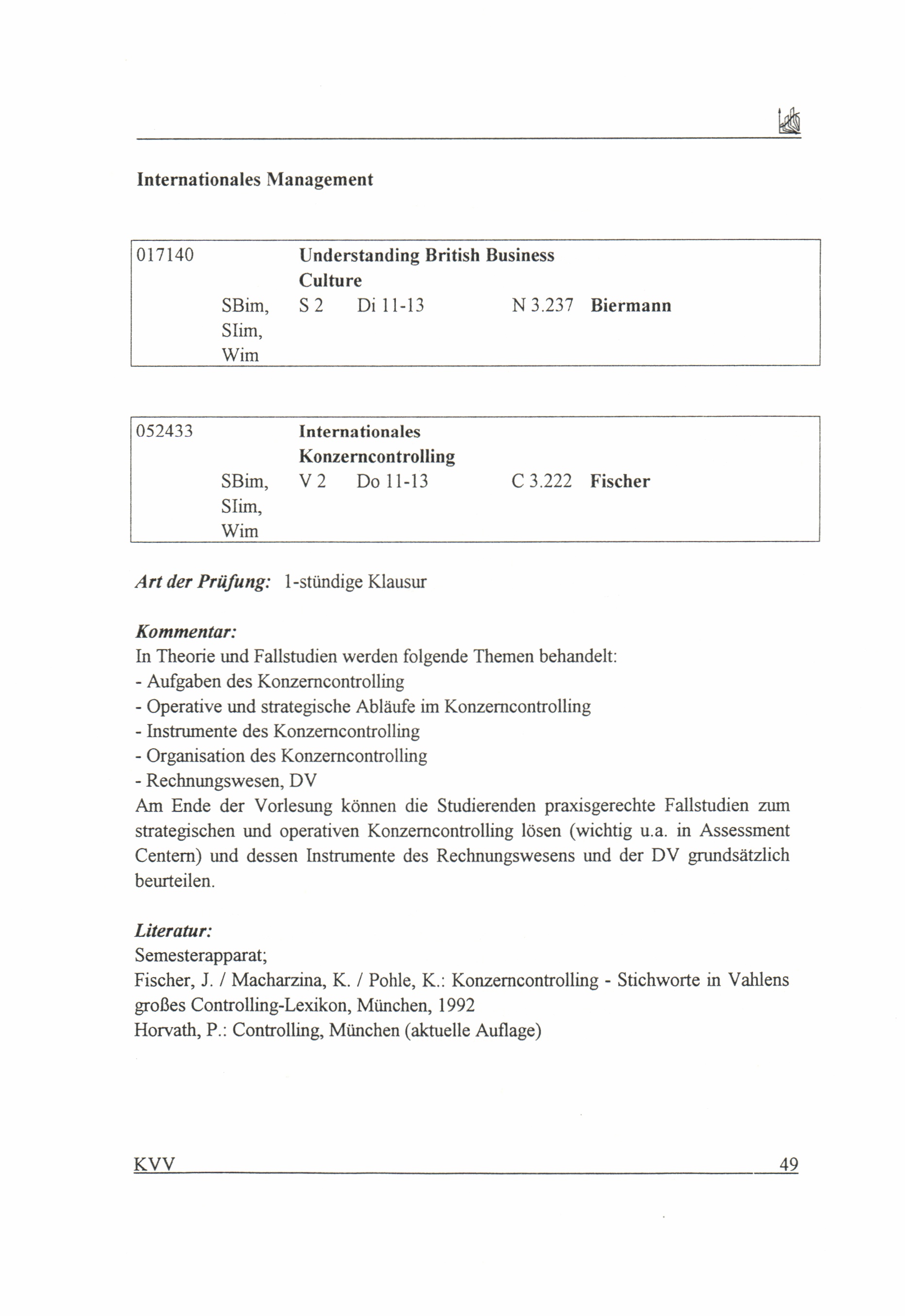 Kommentiertes Vorlesungsverzeichnis