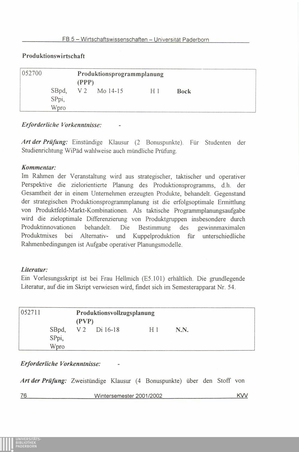 (2001-2002) Wintersemester 2001/2002