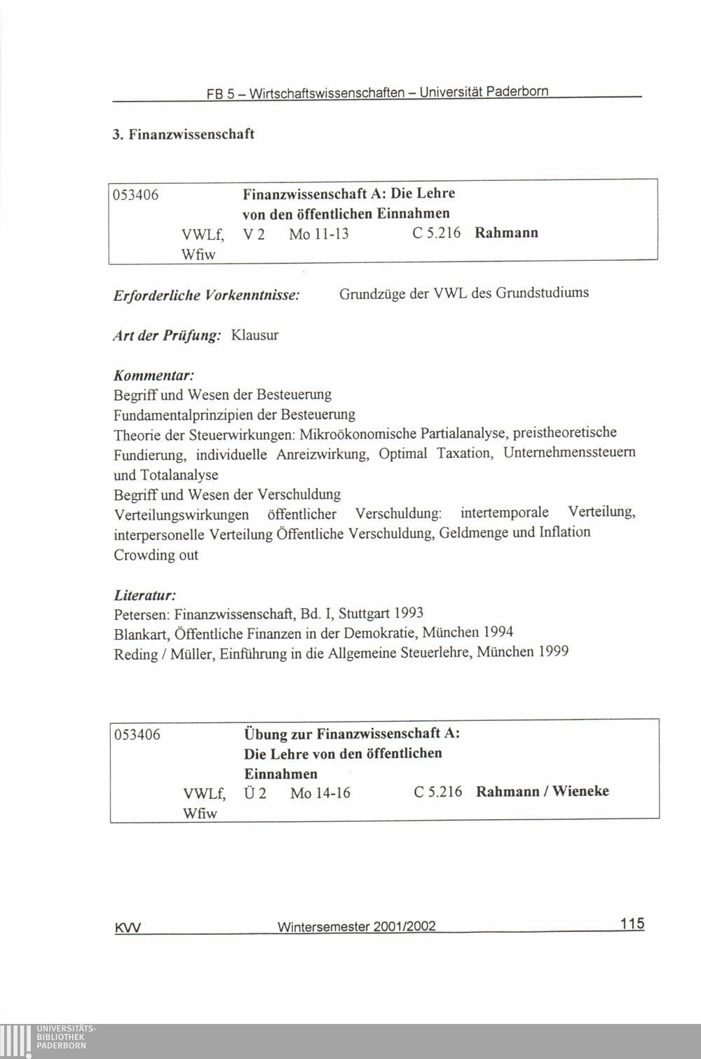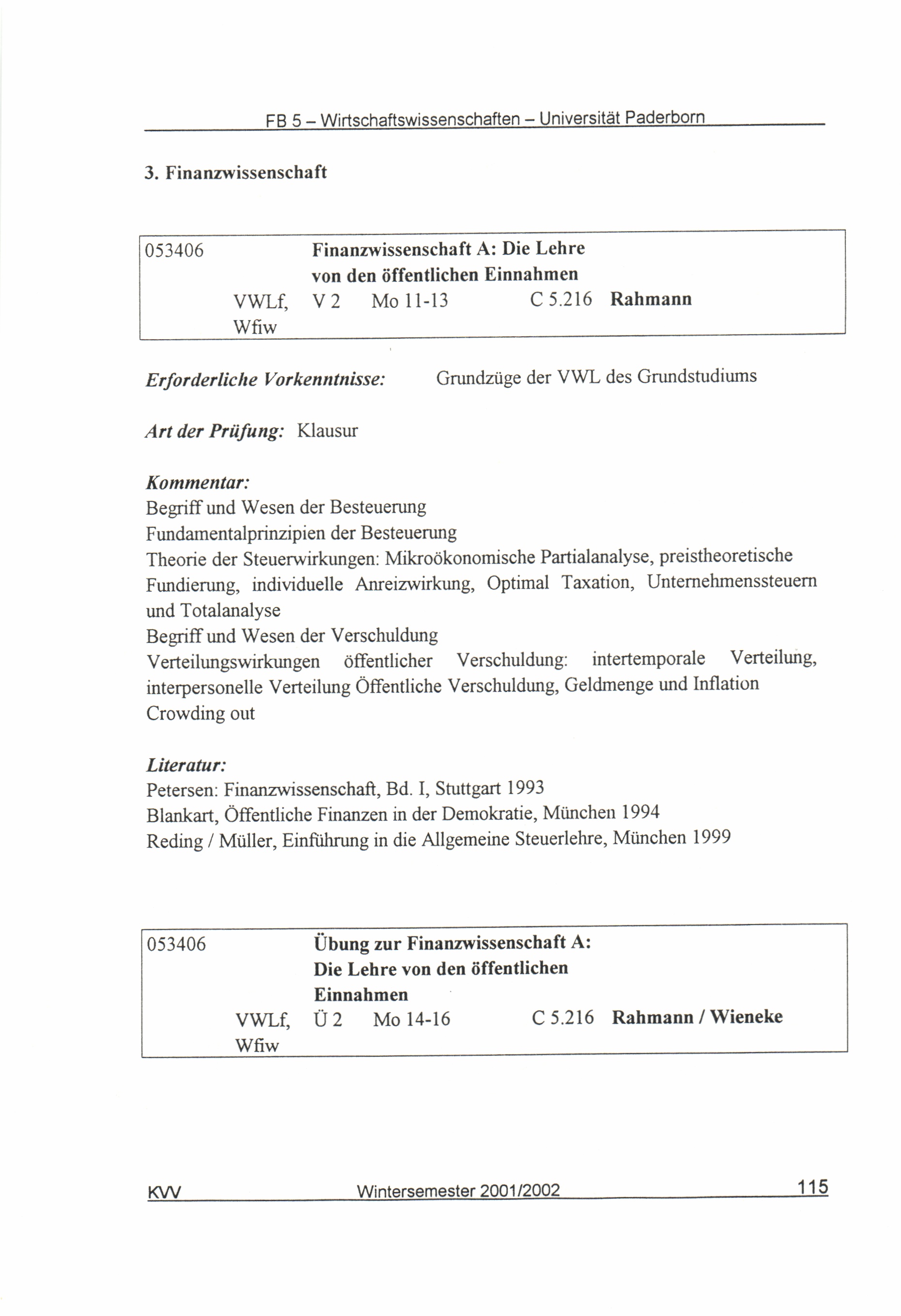 (2001-2002) Wintersemester 2001/2002